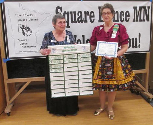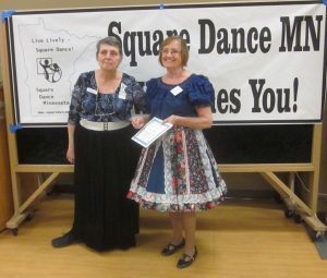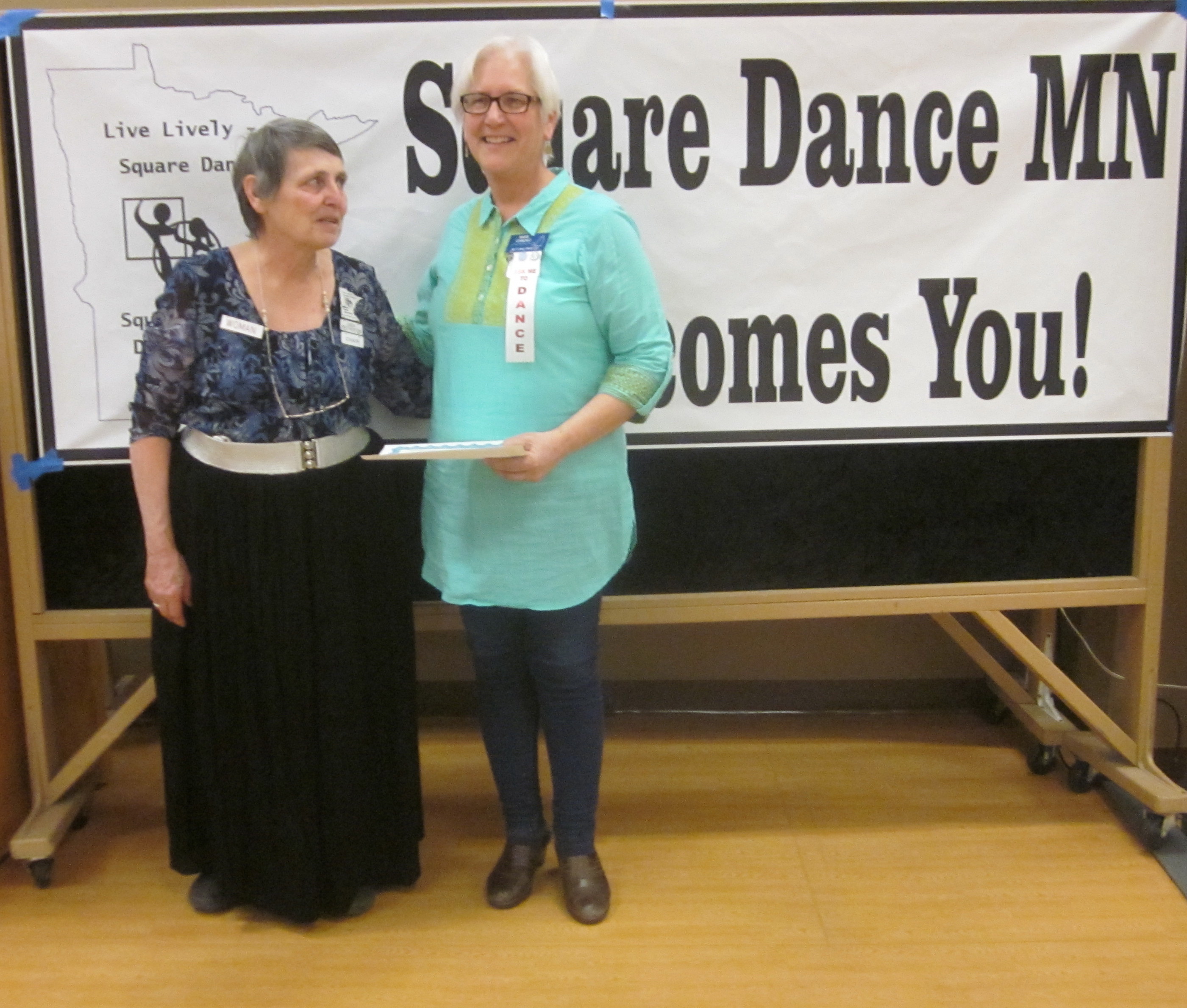 Fourth Most-Active Dancer – Lorraine Wilson, County Line Squares (presented by SDM Treasurer Gael Zachman).