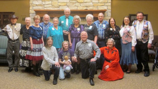 February 19, 2019 – County Line Squares (see photo above) demo square dance for residents at Stoney River Assisted Living and Memory Care, Ramsey, Caller Abe Maier.