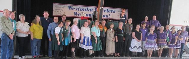 March 17, 2019 – Westonka Whirlers “A Royal Affair” Square Dance, Mound, Caller Bryan Bush, Cuer Ken LaBau. Spares & Pairs (see photo above) and Dakota Grand Squares (see photo below) claimed Westonka Whirlers banners. Westonka Whirlers crowed their new royalty – Queen Debbie and King Fred.