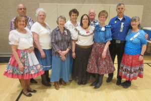 March 22, 2019 – Gospel Plus Square Dance, Hopkins, Caller Tom Allen. Dancers (see photo above) from Ar-Dale Dancers, Beaux & Belles, County Line Squares, Dakota Grand Squares, Hot Foot Stompers, Jolly Promenaders, Single Circles, South Metro Stars, Spares & Pairs, Square & Twirl, Triple T, Wandering Wheels, and Westonka Whirlers danced with Gospel Plus. Also present were County Line Squares Queen Gael and King Doug, Hot Foot Stompers Queen Coni, Jolly Promenaders Queen Cindy and King Ron, Westonka Whirlers Queen Debbie and King Fred, Spares & Pairs Queen Jennifer and King Barry, Come Square Dance Chair Vince Dahlheimer, RoundUp Editors Jeanine and Bob Maiden, Square Dance Minnesota (SDM) Vice Chair Barry Downs, SDM Treasurer Gael Zachman, SDM Executive Director LeRoy Elfmann, SDM Historian Al Martin, SDM Marketing Director Dee Scott, and SDM Membership Director Mary Kay Amberg.