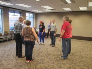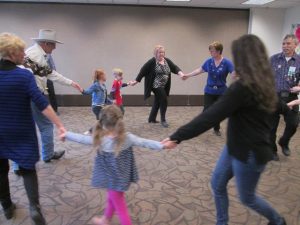 April 6, 2019 – Maple Grove Community Center “ABC” square dancing at the Longevity Expo, Caller Roger McNeil, Square dancing had a booth and room at the Expo. Let’s have a round of applause for the 52 square dancers who turned out to dance with the Expo attendees who wanted to try square dancing. All ages tried square dancing at the Expo.