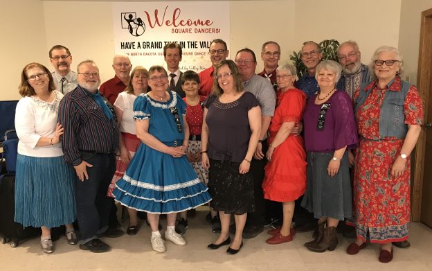 April 25-26, 2019 – 67th North Dakota State Square and Round Dance Festival, Grand Forks, Caller Noah Siegmann, Cuer Bernadette McNeil; guest Callers Roger McNeil, Charley Huhtala, and Andy Flint, guests Cuer Donna Stone. One hundred twelve dancers from Canada, North Dakota, Minnesota, and Wisconsin enjoyed the festival hosted by Valley Stars (see photo above).