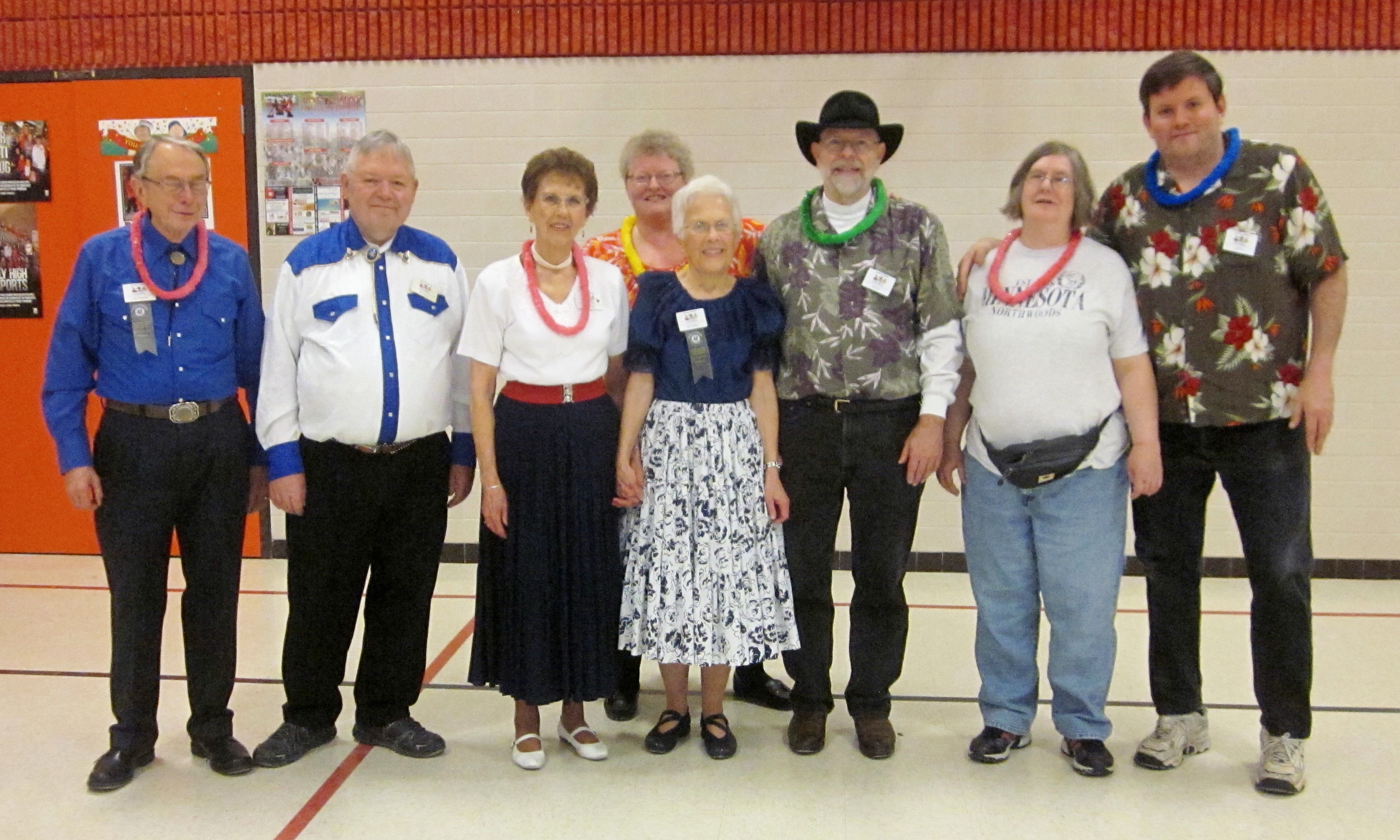 February 13, 2015 – County Line Squares “Aloha Night” Dance, Monticello, Caller Tom Allen, Cuer Sarah Klaphake, Guest Caller Dick Rueter. Dancers from Westonka Whirlers, Wandering Wheels, Spares & Pairs, Single Circles, Riverbend Promenaders, Hotfoot Stompers, Gospel Plus, County Line Squares, Bloomington Swirlers, Beaux & Belles, and Ar-Dales made 11 squares. Royalty in attendance were Queen Ursula from Single Circles and Queen Catty from Bloomington Swirlers. Also in attendance were SDM Secretary Bob Meyer and Cuer Ken LaBau. Ar-Dales, Beaux & Belles, and Riverbend Promenaders retrieved their banners.