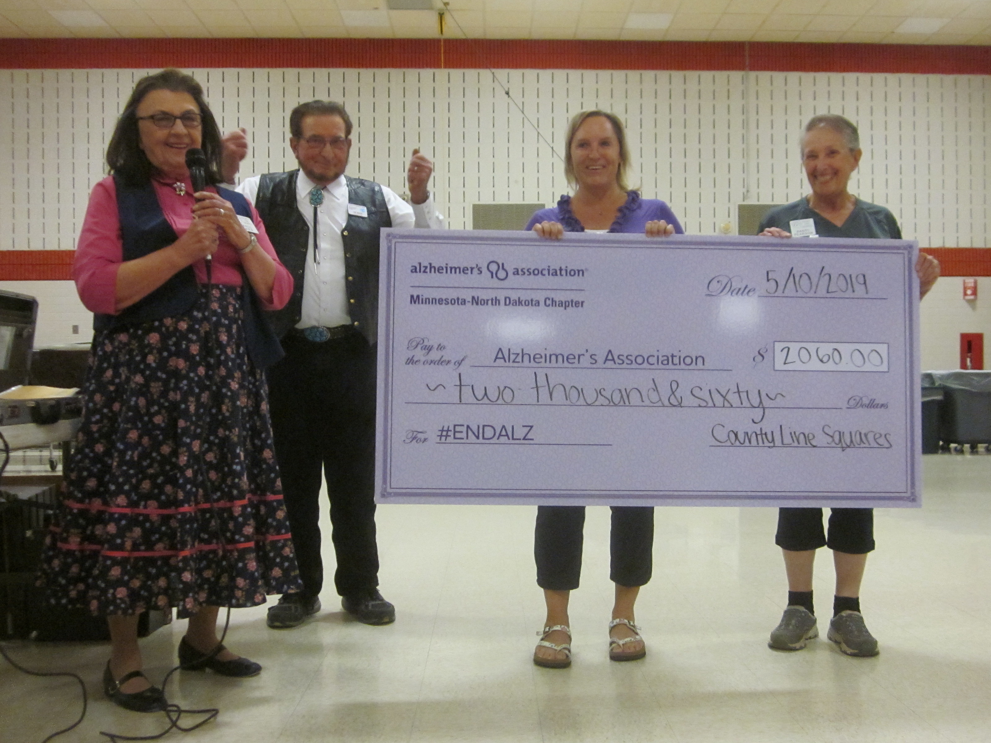 A check for $2,060 (from the March fund-raiser) was presented to the Alzheimer’s Association Minnesota-North Dakota.