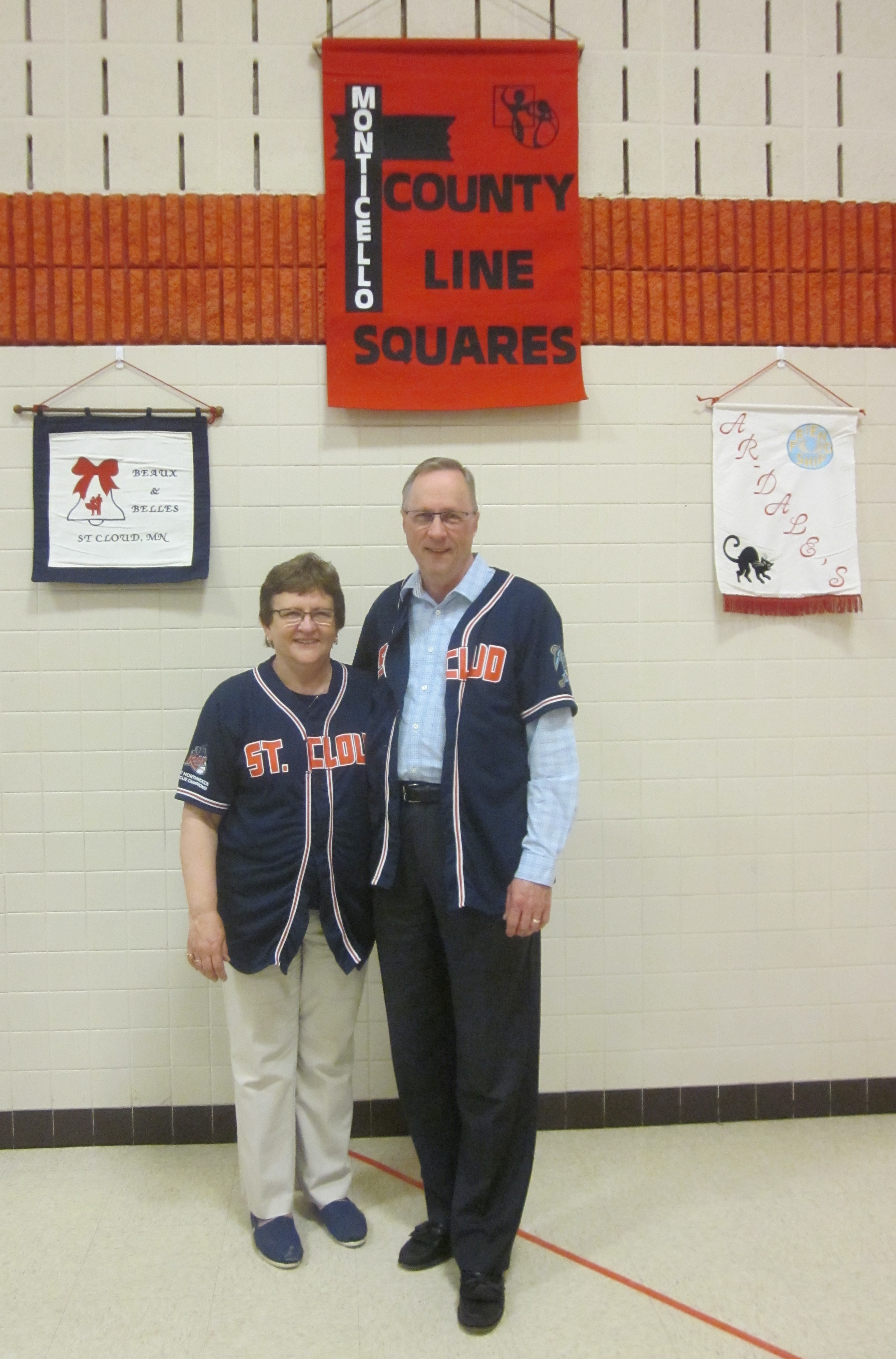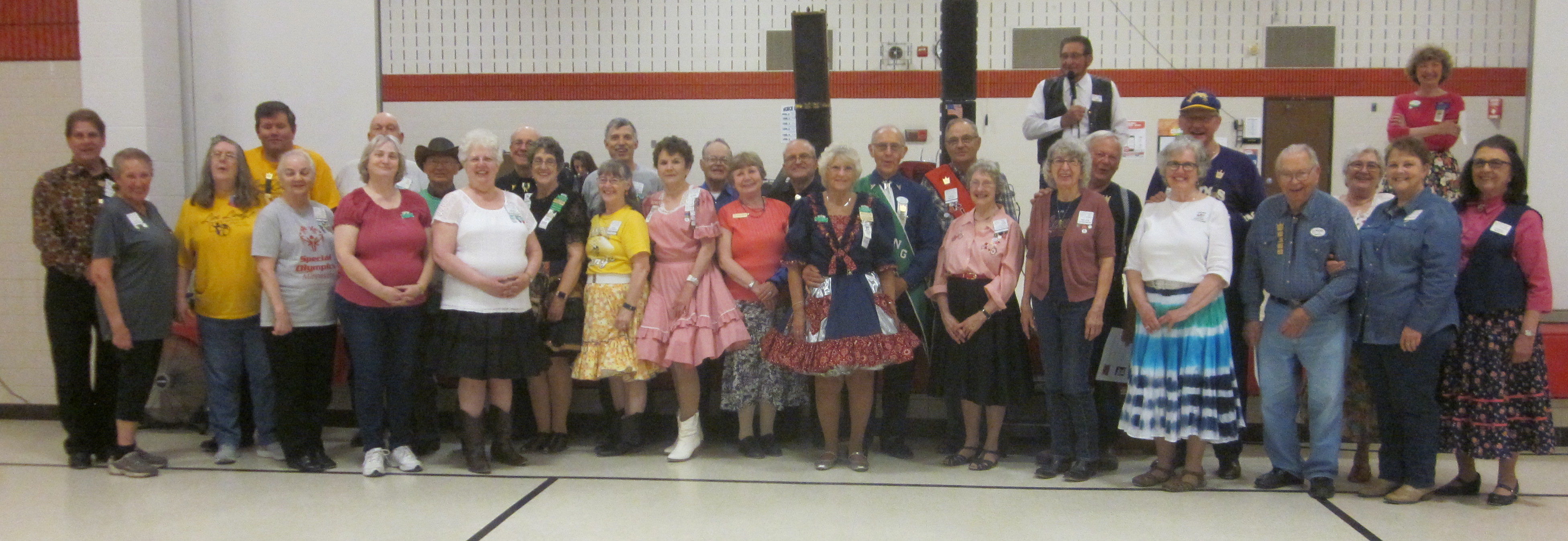 May 10, 2019 – County Line Squares “Sports Night/King’s Club Recognition” Square Dance, Monticello, Caller Abe Maier, Cuer Sarah Klaphake, Guest Caller Tom Allen. Dancers from Ar-Dale Dancers, Beaux & Belles, County Line Squares, Dakota Grand Squares, Hot Foot Stompers, Jolly Twirlers, Koronis Nite Owls, Spares & Pairs, and Westonka Whirlers were present. Also present were Ar-Dale Dancers Queen Kathleen, County Line Squares Queen Carmen and King David, Spares & Pairs Queen Evonne and King Mel, SDM Vice Chair Barry Downs, SDM Treasurer Gael Zachman, SDM Executive Director LeRoy Elfmann, SDM Historian Al Martin, and SDM Marketing Director Dee Scott. Ar-Dale Dancers, Beaux & Belles, and Dakota Grand Squares retrieved their banners.