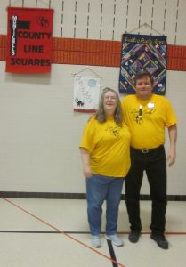 County Line Squares new Queen Carmen and King David were introduced the outgoing Queen Gael and King Doug. Gael and Doug received the Edythe Beard Travelling Banner for their efforts during their tenure.