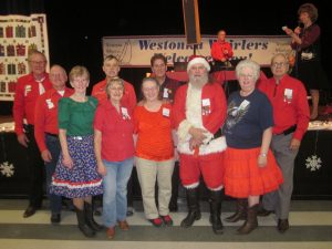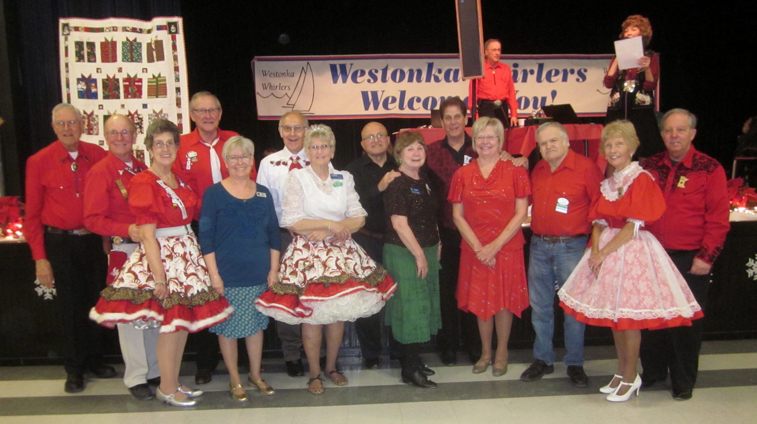 December 21, 2019 – Westonka Whirlers “Tis the Season” Square Dance, Mound, Callers Tom Allen and Dick Rueter, Cuer Sarah Klaphake. Ar-Dale Dancers, County Line Squares, Crystal Cross Trailers, Dakota Squares, Hot Foot Stompers, Jolly Promenaders, Single Circles, Spares & Pairs, TMF Squares, and Triple T danced with Westonka Whirlers. County Line Squares Queen Carmen, Jolly Promenaders Queen Cindy and King Dan, and Spares & Pairs Queen Evonne and King Mel were present. Also present were Come Square Dance Chair Vince Dahlheimer, SDM Chair Barry Downs, SDM Vice Chair LeRoy Elfmann, SDM Treasurer Gael Zachman, SDM Historian Al Martin, SDM Marketing Director Dee Scott, and SDM Membership Director Mary Kay Amberg. Hot Foot Stompers retrieved their banner (see photo above), County Line Squares and Spares & Pairs already have a Westonka Whirlers banner (see photos below).