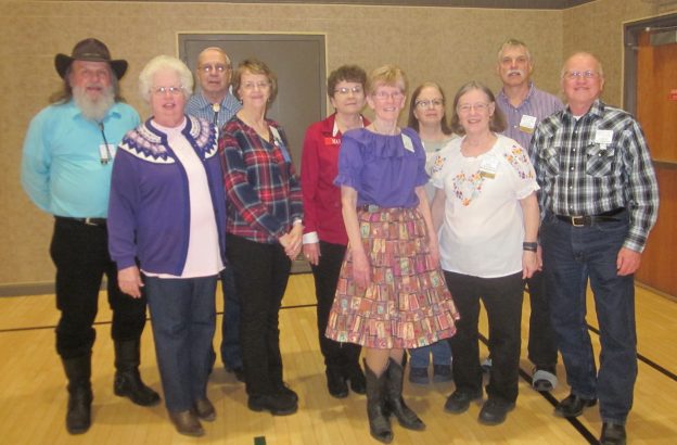 February 28, 2020 – Gospel Plus Square Dance, Hopkins, Caller Tom Allen, Cuer Sarah Klaphake. Dancers from Afternoon Squares, Ar-Dale Dancers, Beaux & Belles, County Line Squares (see photo above), Crystal Cross Trailers, Dakota Squares, ETTA Square & Rounds, Gospel Plus, Hotfoot Stompers, South Metro Stars, Spares & Pairs, Square & Twirl, Wandering Wheels, and Westonka Whirlers were present. Also present were Come Square Dance Chair Vince Dahlheimer, SDM Chair Barry Downs, SDM Vice Chair LeRoy Elfmann, SDM Treasurer Gael Zachman, SDM Historian Al Martin, SDM Marketing Director Dee Scott, and SDM Membership Director Mary Kay Amberg.