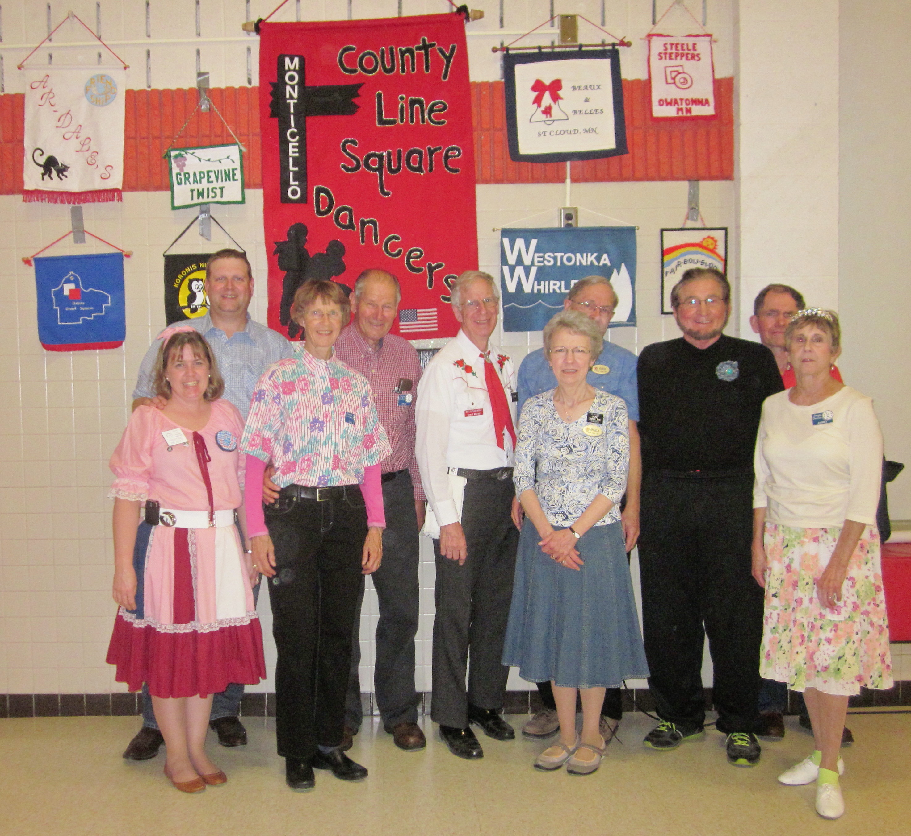 May 8, 2015 – County Line Squares “May Flowers” Square Dance, Monticello, Caller Abe Maier. Nine squares with members from Westonka Whirlers, Spares & Pairs, Single Circles, Riverbend Promenaders, Koronis Nite Owls, Hotfoot Stompers, and County Line Squares were present.