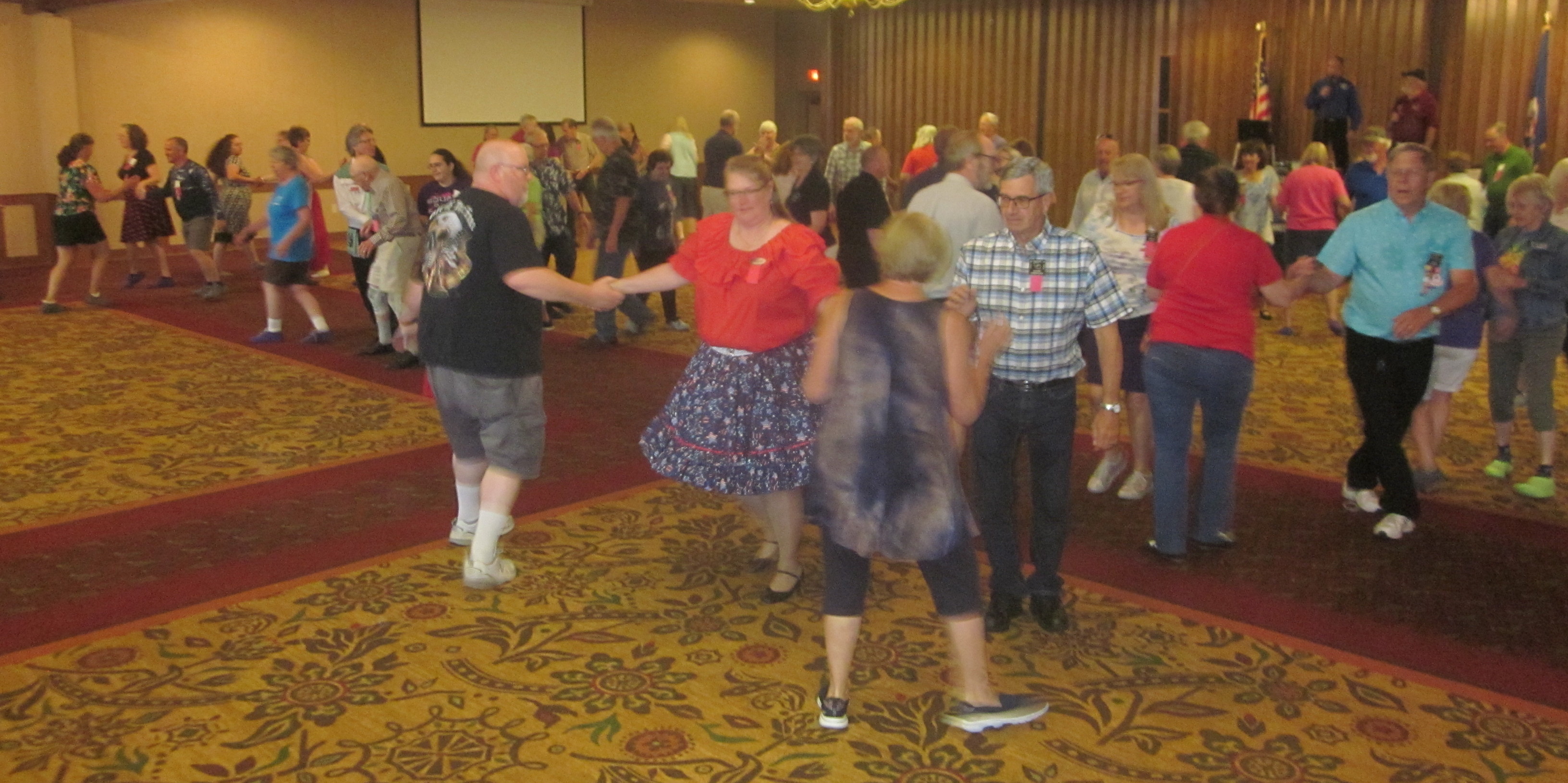 June 11-13, 2021 – Minnesota State Square and Round Dance Convention; Breezy Point Resort; Featured Caller Mike Hogan, national and area callers; Featured Cuers Kay and Bob Kurczewski and area cuers. Two hundred and fourteen dancers from Illinois, Indiana, Iowa, Minnesota, North Dakota, South Dakota, and Wisconsin were present. Photos below were taken on Sunday morning with nine squares dancing.