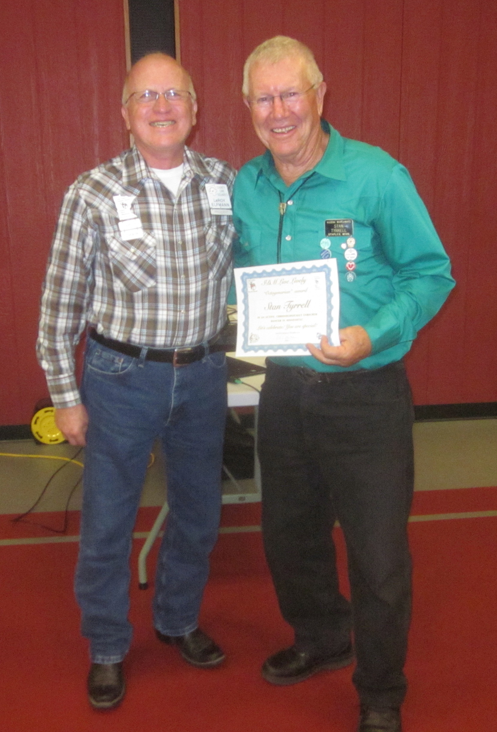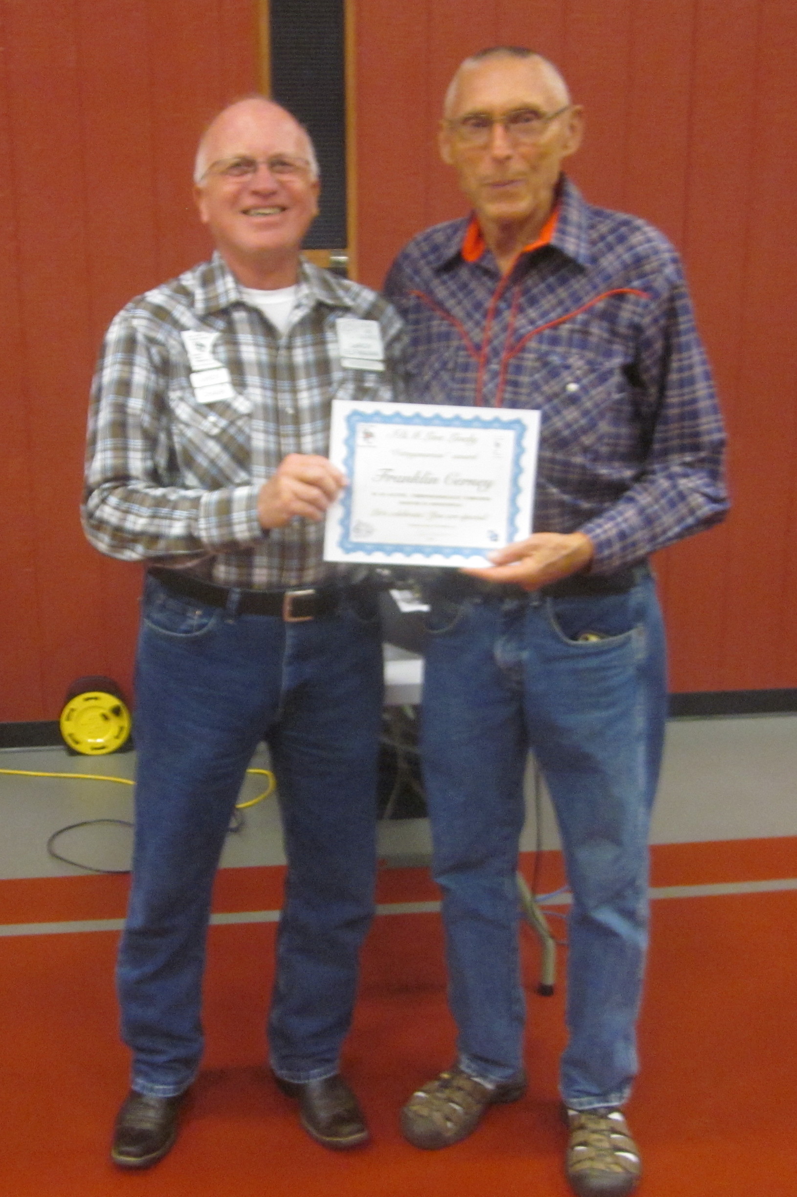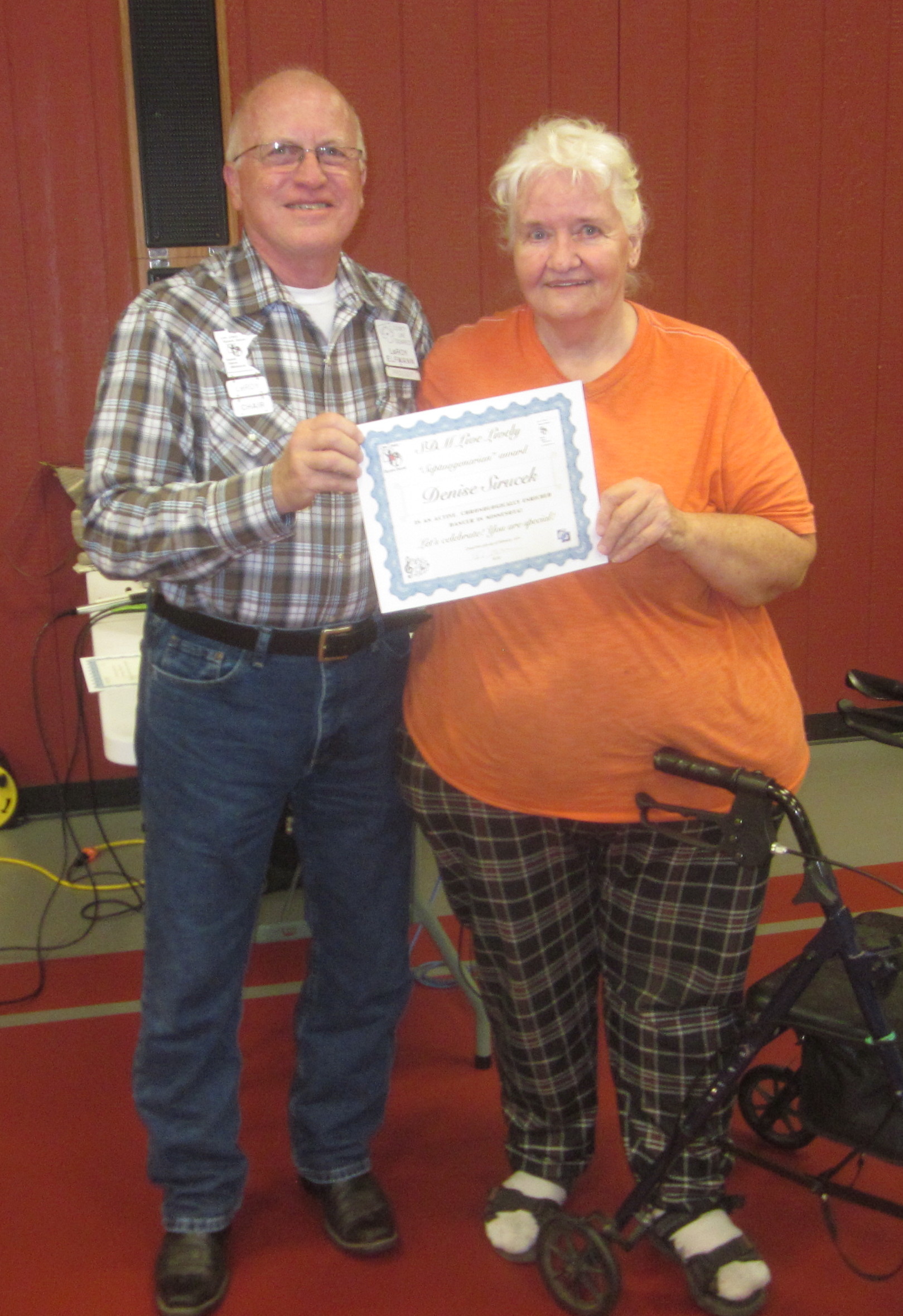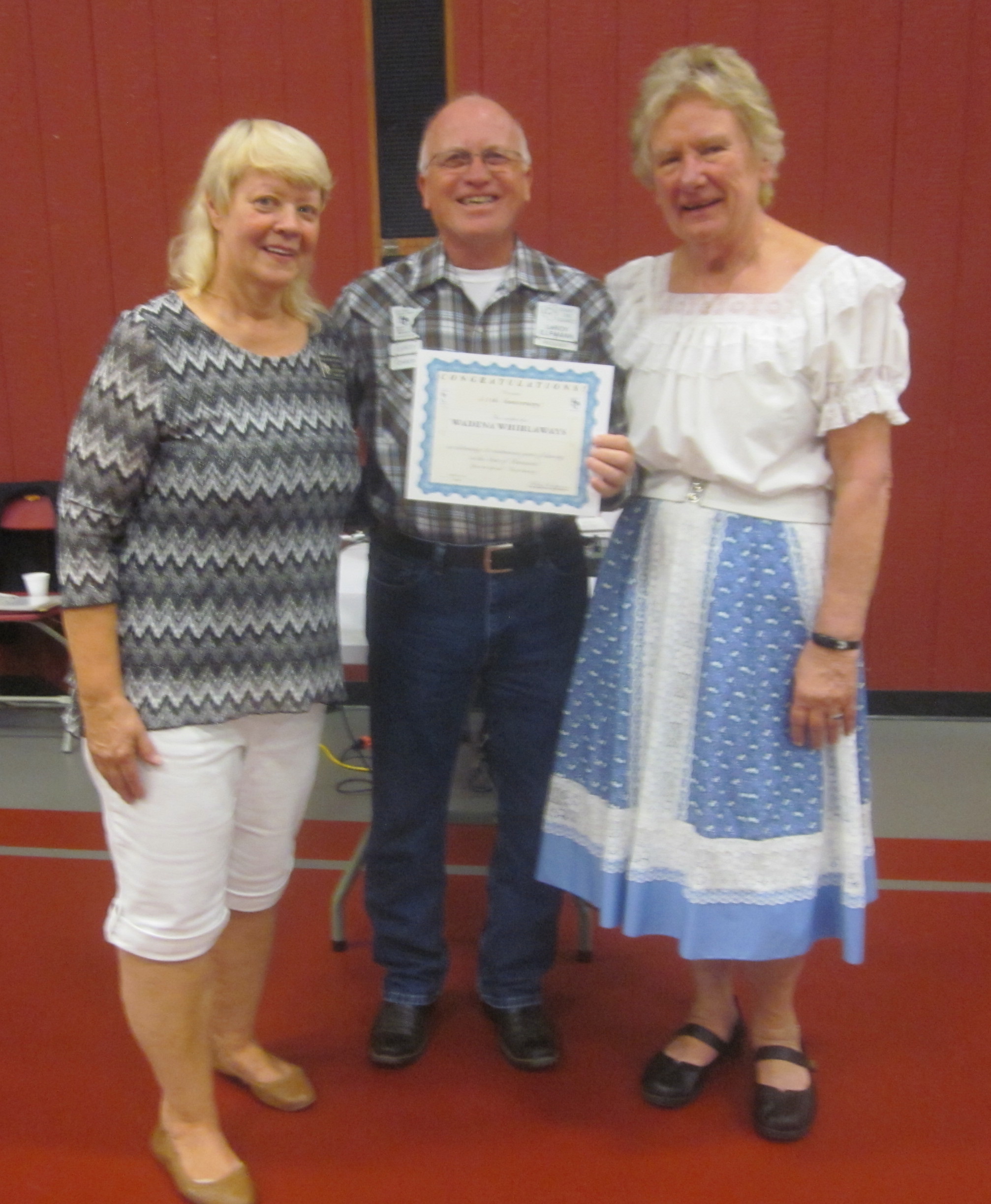 August 26, 2021 – Wadena Whirlaways Refresher Square Dance, Staples, Caller Tom Allen, Cuer Donna Stone. Rockin’ Country Dancers, Rays Promenaders, North Country Plus, Friendly Squares, County Line Squares, and Country Twirlers joined the Wadena Whirlaways dancers (some dancers had departed before the photo was taken). SDM board members present were: Education Director Audrey Boyd, Treasurer Gael Zachman, and Chair LeRoy Elfmann. LeRoy presented Live Lively Program awards to recognize chronologically enriched dancers who remain active within their organizations (see photos below).