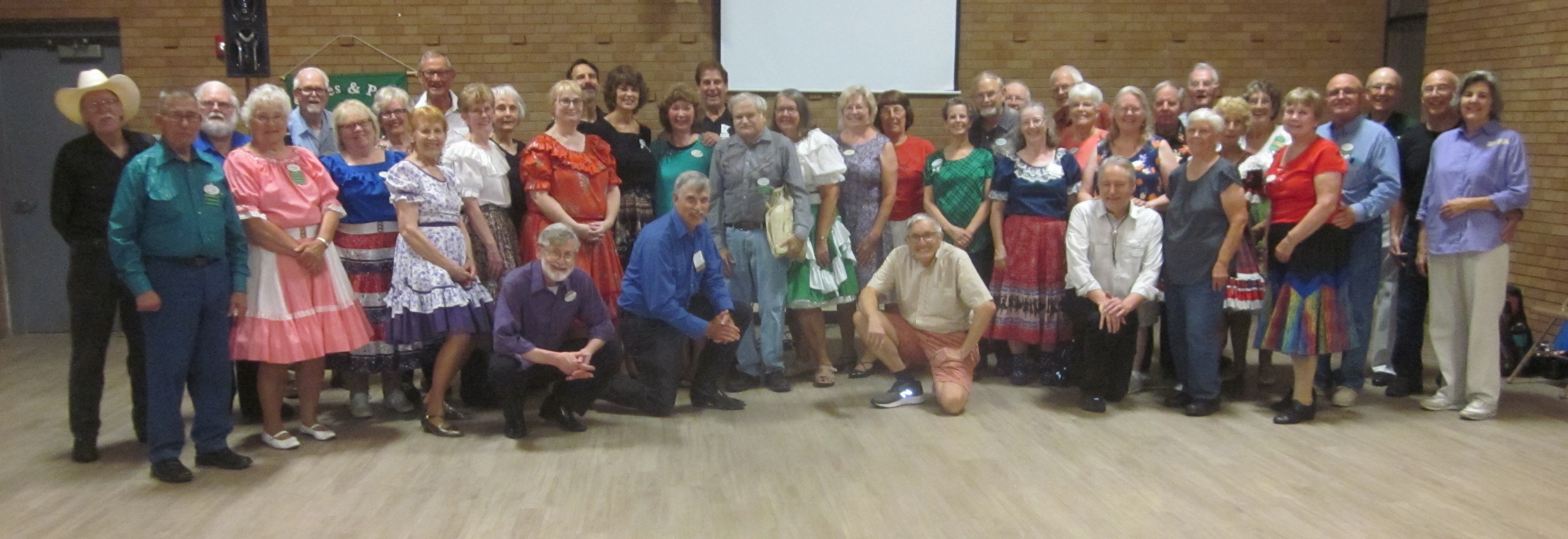 Dancers with Caller Larry Fruetel and Cuers Jean and Steve Philson (some of the dancers departed before the photo was taken).
