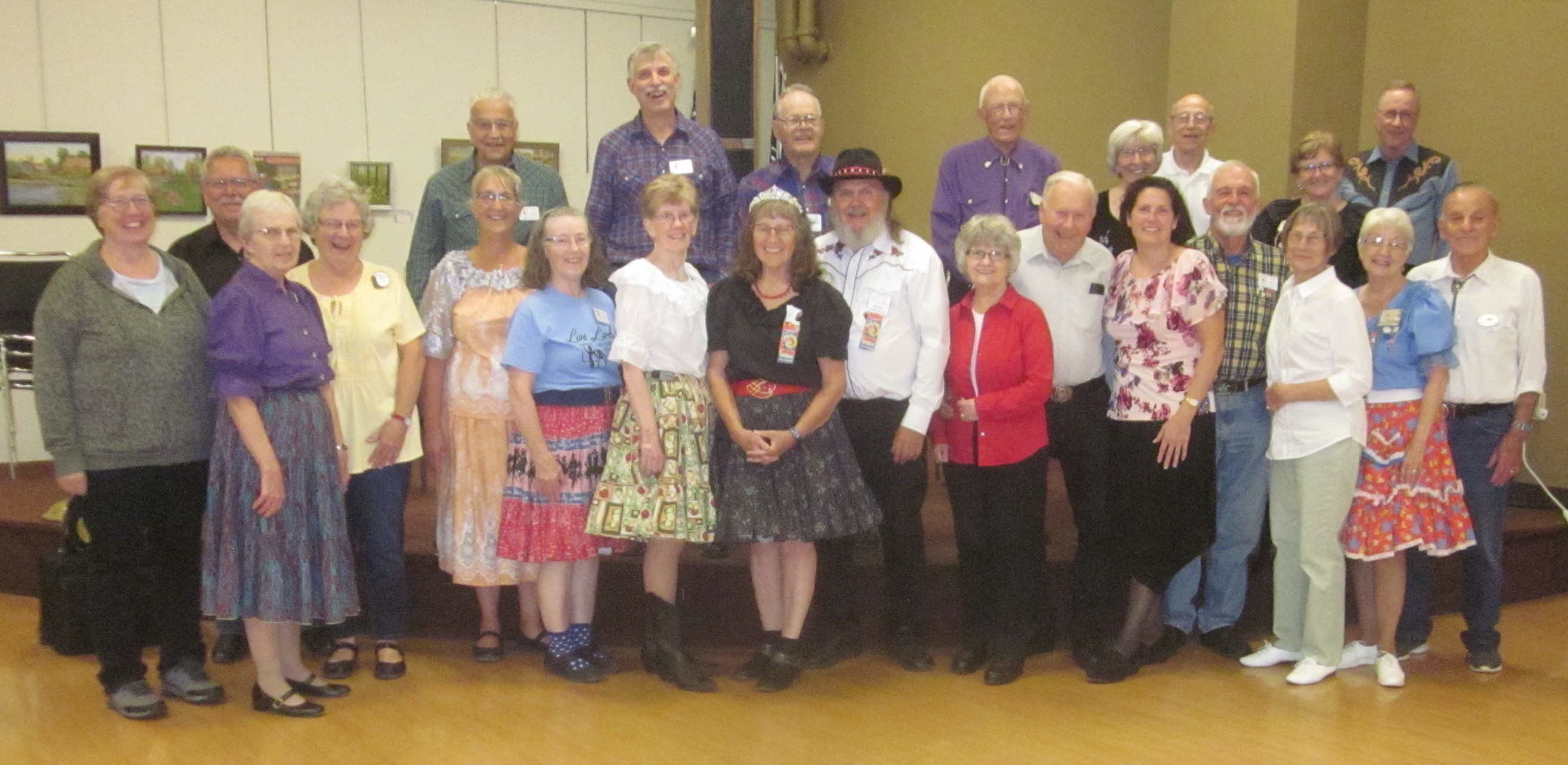 September 15, 2021 – Beaux & Belles Square Dance, St Cloud, Caller Dick Severson. Rockin’ Country Dancers, Hotfoot Stompers, Crystal Cross Trailers, and County Line Squares danced with Beaux & Belles. Hotfoot Stompers Queen Sharon, SDM Chair LeRoy Elfmann, and SDM Treasurer Gael Zachman were present. (Some of the dancers departed before the photo was taken.)