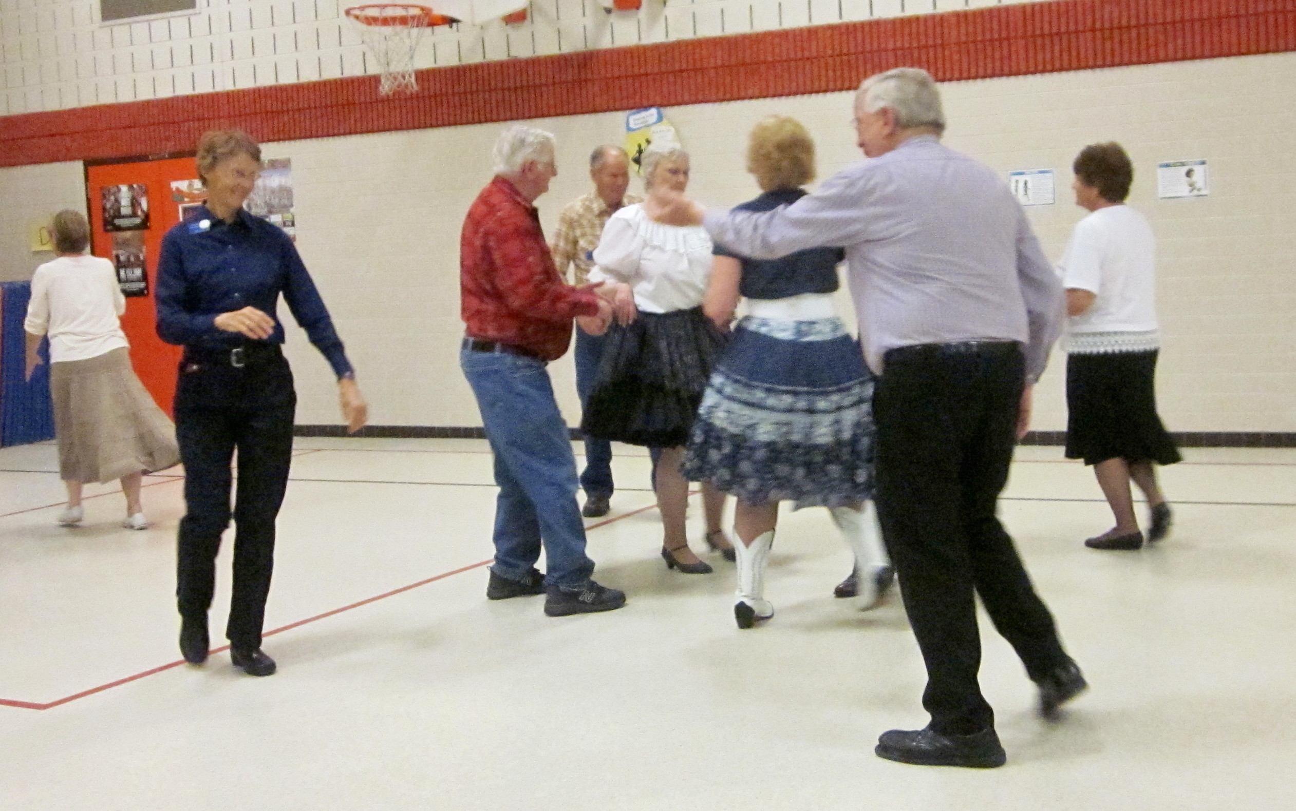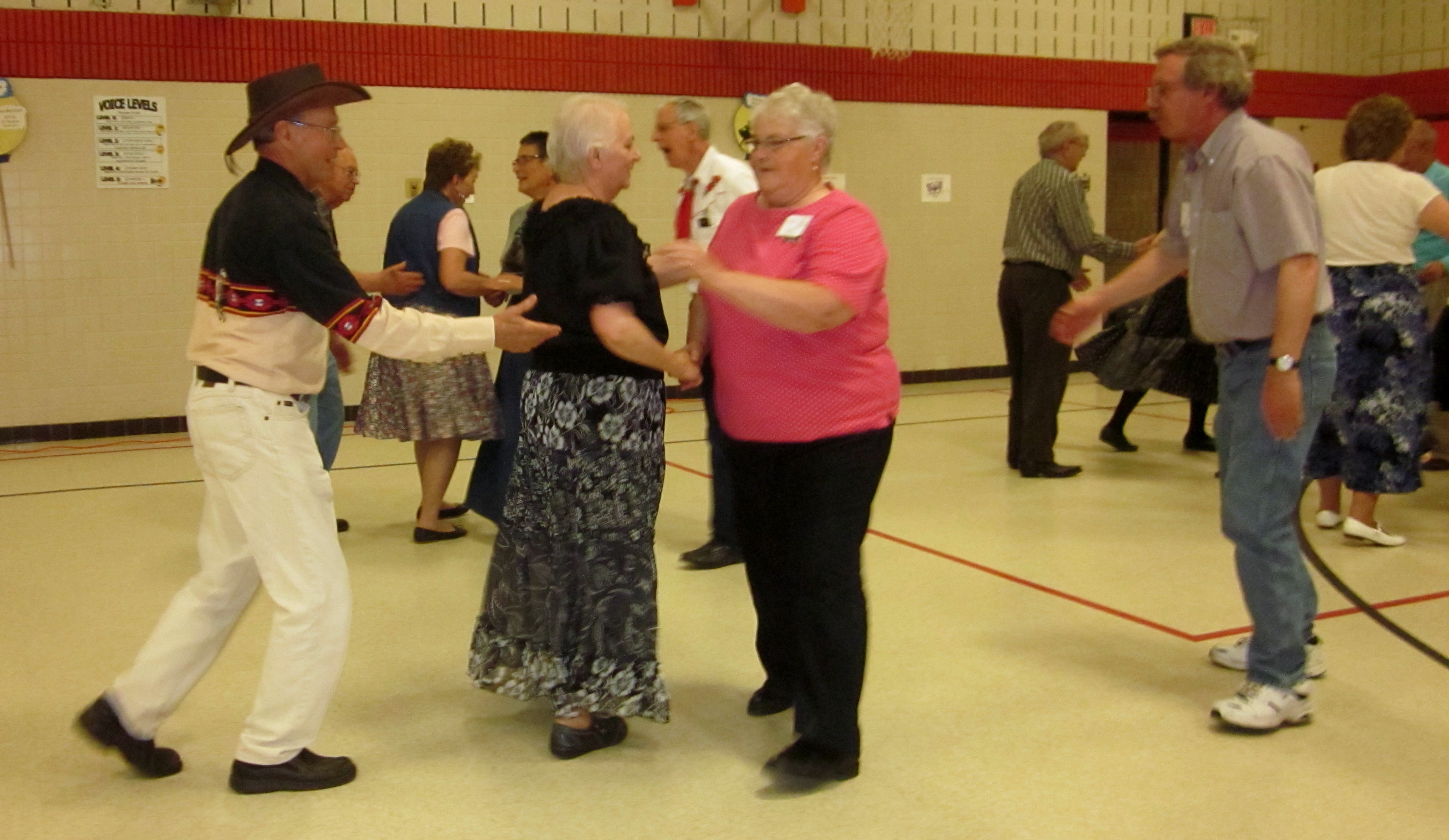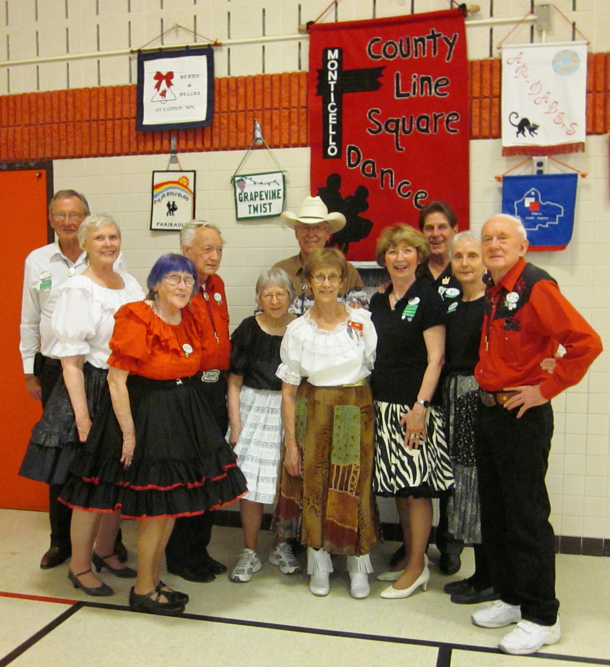 May 29, 2015 – County Line Squares “Convention Bound” Square Dance, Monticello, Caller Abe Maier, Guest Cuer Jane Simpson. Eight squares from eight organizations (Cambridge Corners, County Line Squares, Dan’se PAC, Hotfoot Stompers, Rum River Squares, Single Circles, Spares & Pairs, and Westonka Whirlers were represented. Cambridge Corners Queen Coni, Westonka Whirlers Queen Debbie, and County Line Squares Queen Adrienne were in attendance. Also attending were Square Dance Minnesota Vice Chair Don Hanson, Secretary Bob Meyer, and Historians Al and Cindy Martin as well as the Federation Roundup’s Subscription Manager and Enhancin’ Dancin’ Editor Paul Pearson.