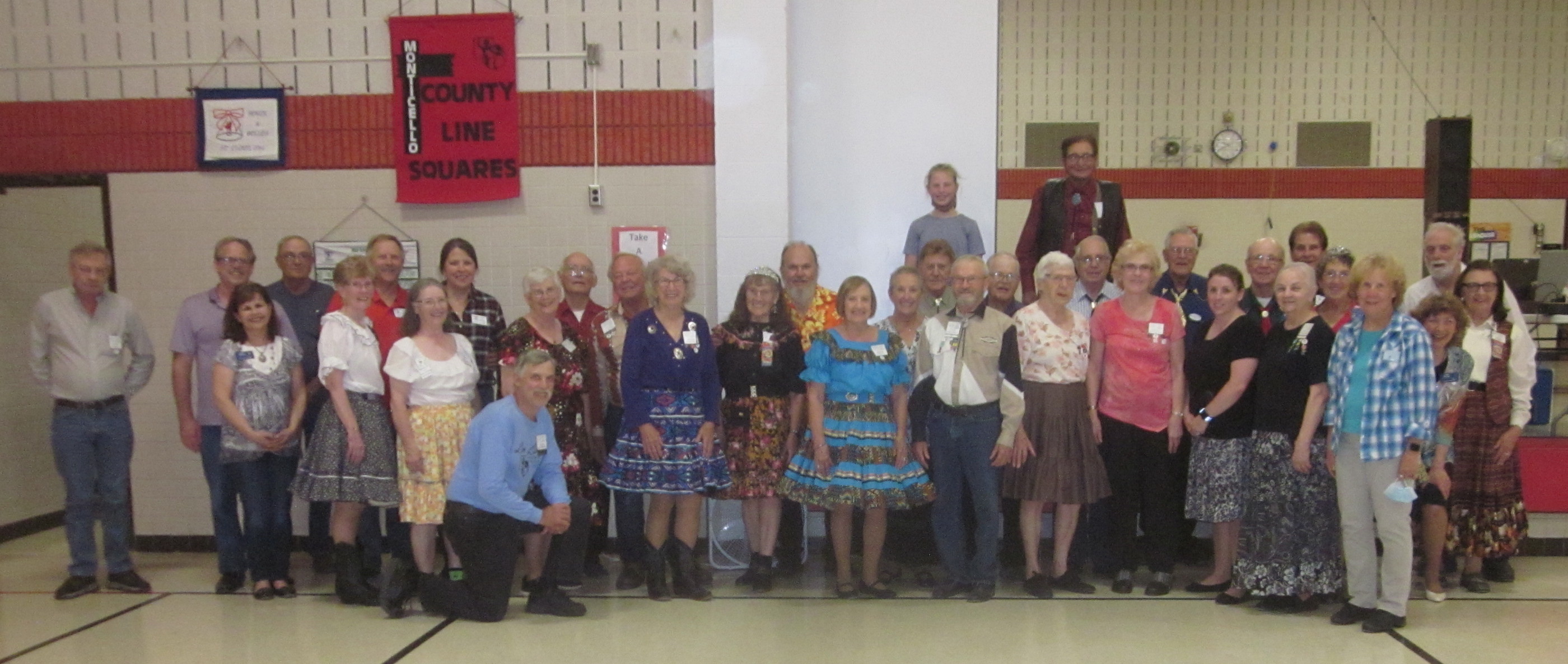 October 8, 2021 – County Line Squares “Autumn Leaves” Square Dance, Monticello, Caller Abe Maier, Cuer Sarah Klaphake. Dancers from Beaux & Belles, Cambridge Corners, Hotfoot Stompers, Single Circles, Spares & Pairs, and Westonka Whirlers danced with County Line Squares. Hotfoot Stompers Queen Sharon, Westonka Whirlers Queen Jennifer and King Barry, SDM Chair LeRoy Elfmann, SDM Treasurer Gael Zachman, and SDM Historian Al Martin were present. Westonka Whirlers claimed a County Line Squares banner (see photo above – some had left before the photo was taken).