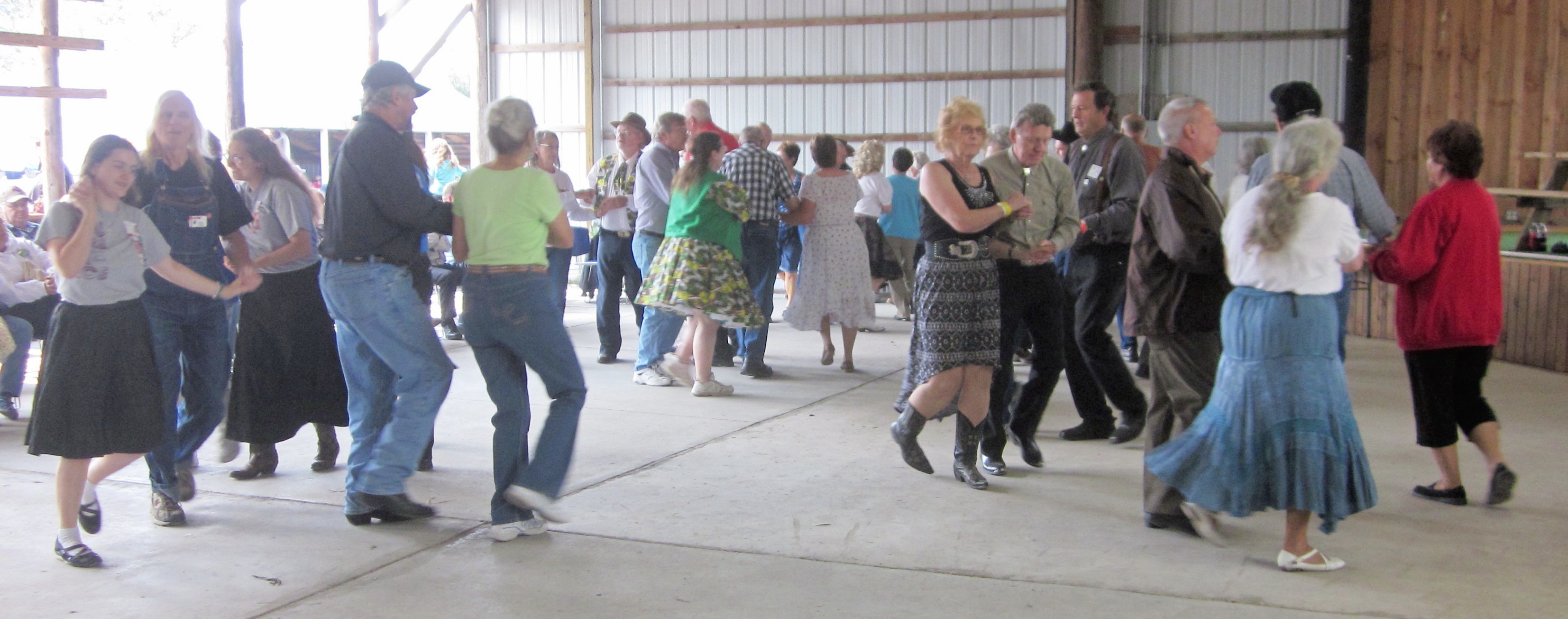 August 23, 2015 – Nowthen Threshing Show Demo, Nowthen, Caller Abe Maier. Seven squares from Afternoon Squares, Beaux & Belles, Cambridge Corners, County Line Squares, Hotfoot Stompers, Rum River Squares, Single Circles, and Westonka Whirlers assisted many new dancers at the demo.