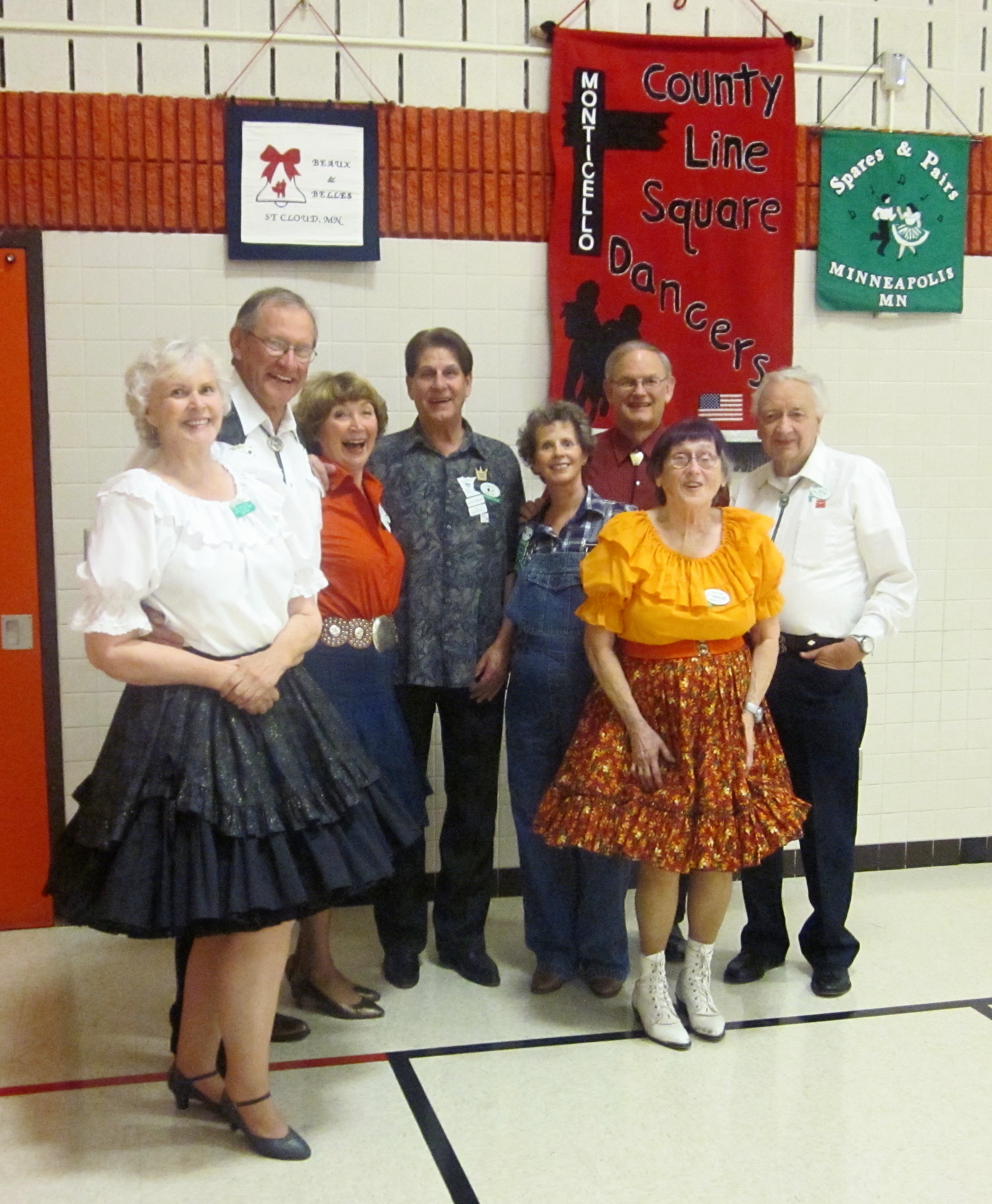 September 11, 2015 – County Line Squares “Down on the Farm” Square Dance, Monticello, Caller Abe Maier, Cuer Jane Simpson. Six squares with dancers from Westonka Whirlers, Spares & Pairs, Single Circles, and County Line Squares participated. Spares & Pairs retrieved their banner.