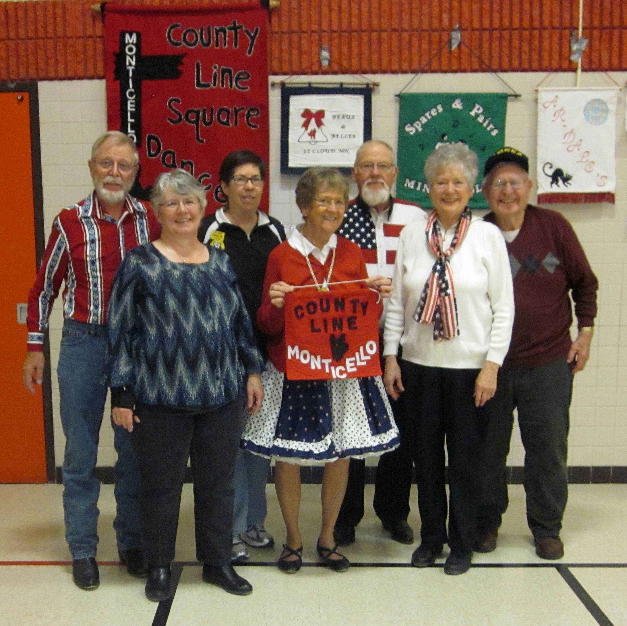 November 14, 2014 – County Line Squares “Red, White & Blue” Dance, Monticello, Caller Roger McNeil, Cuer Bernadette McNeil. Nine squares from 12 organizations were represented.