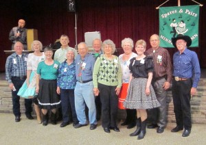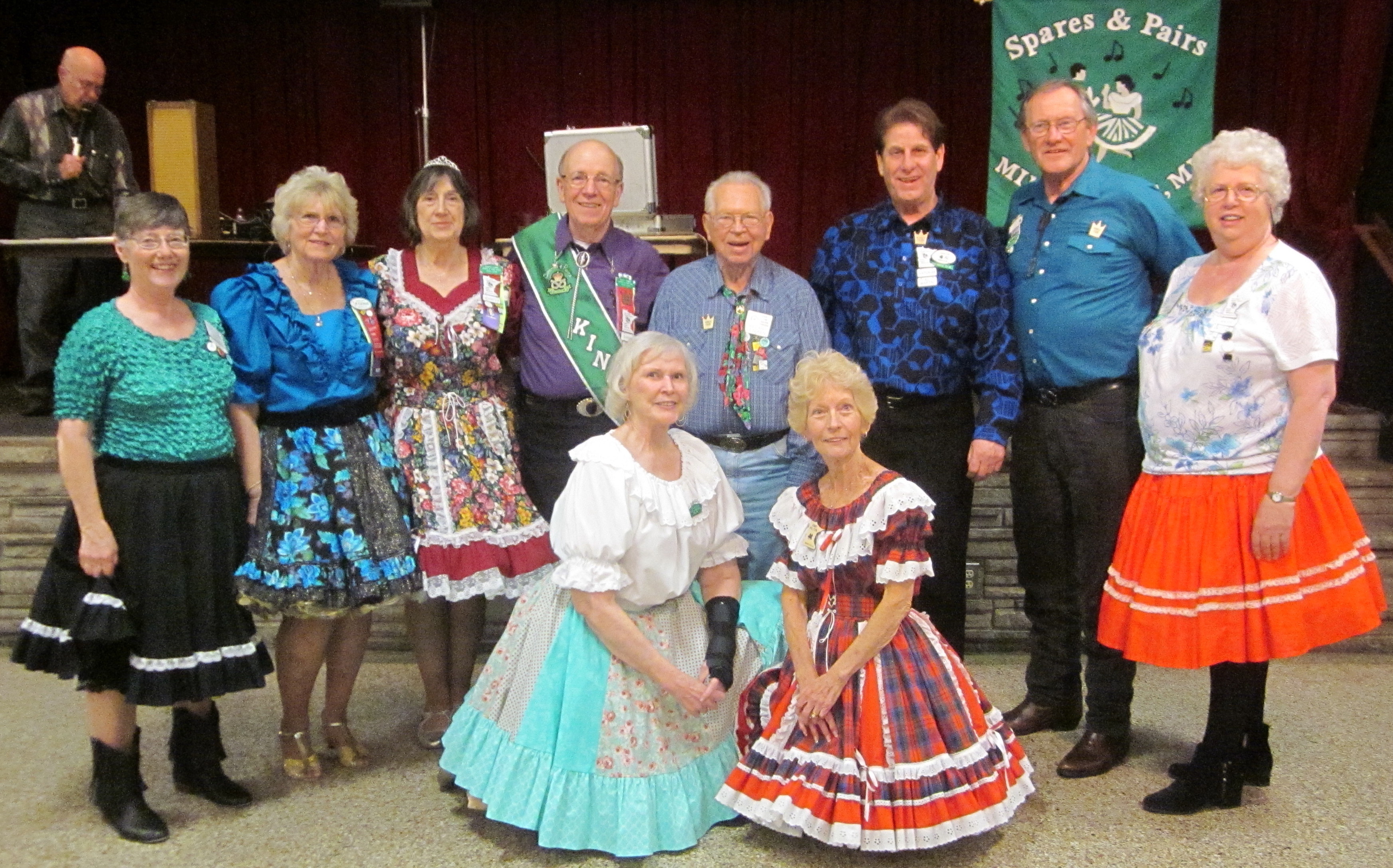March 9, 2016 – Spares & Pairs Square Dance, Bloomington, Caller Larry Fruetel, Cuer Ray Belanger. Seven squares with dancers from five organizations were present. Also present were Spares & Pairs Queen Jennifer and King Barry, SDM Chair LeRoy Elfmann, SDM Vice Chair Don Hanson, SDM Treasurer Deb Hollimon, SDM Secretary Mary Kay Amberg, and SDM Historian Al Martin.