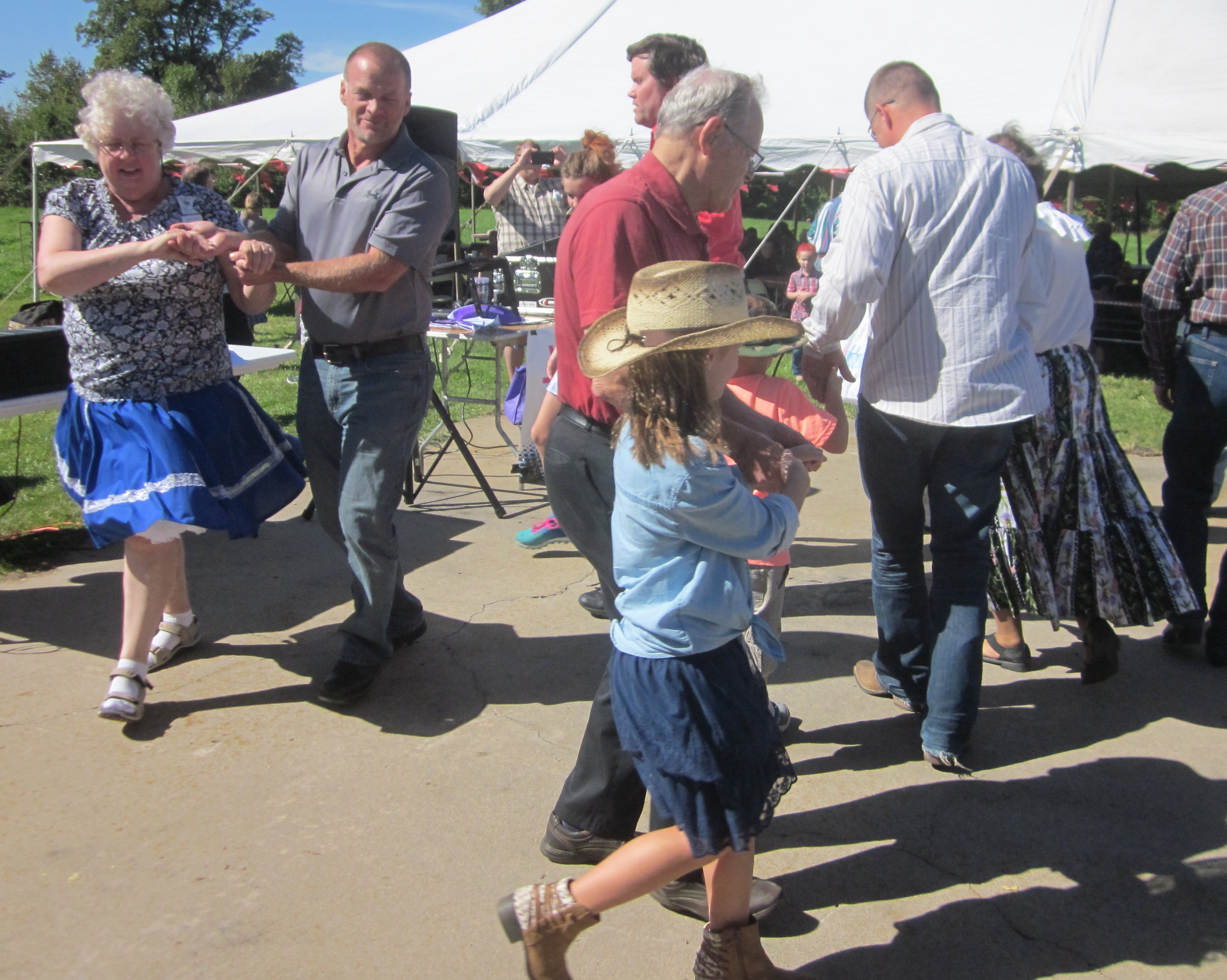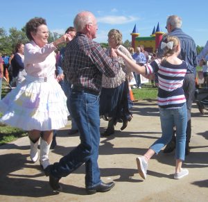 September 11, 2016 – Zion Lutheran Church “Z-Fest” Demo Square Dance, Buffalo, Caller Abe Maier. Two squares with dancers from Spares & Pairs, Ar-Dale Dancers, and County Line Squares were present. Three squares danced with the new dancers.