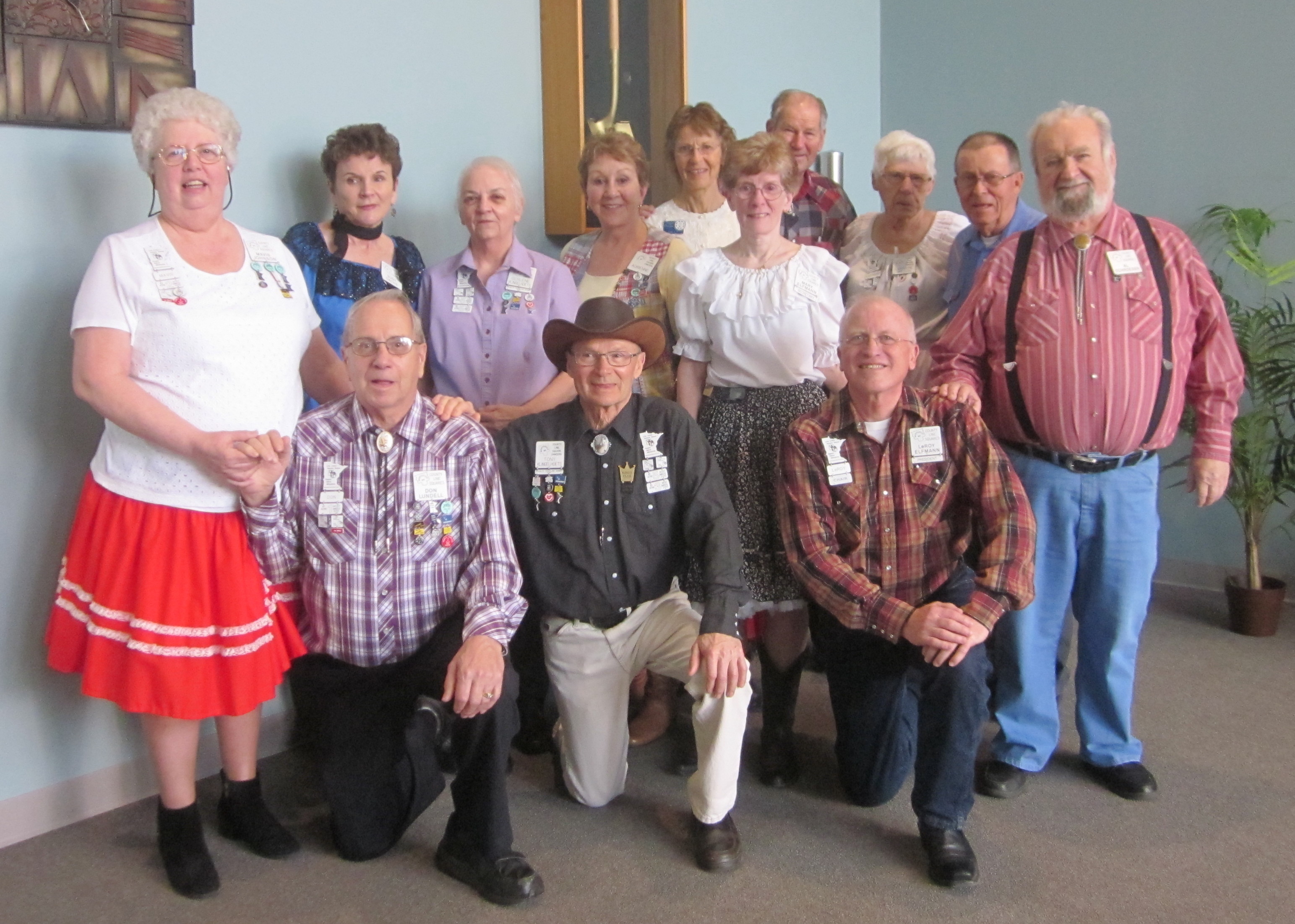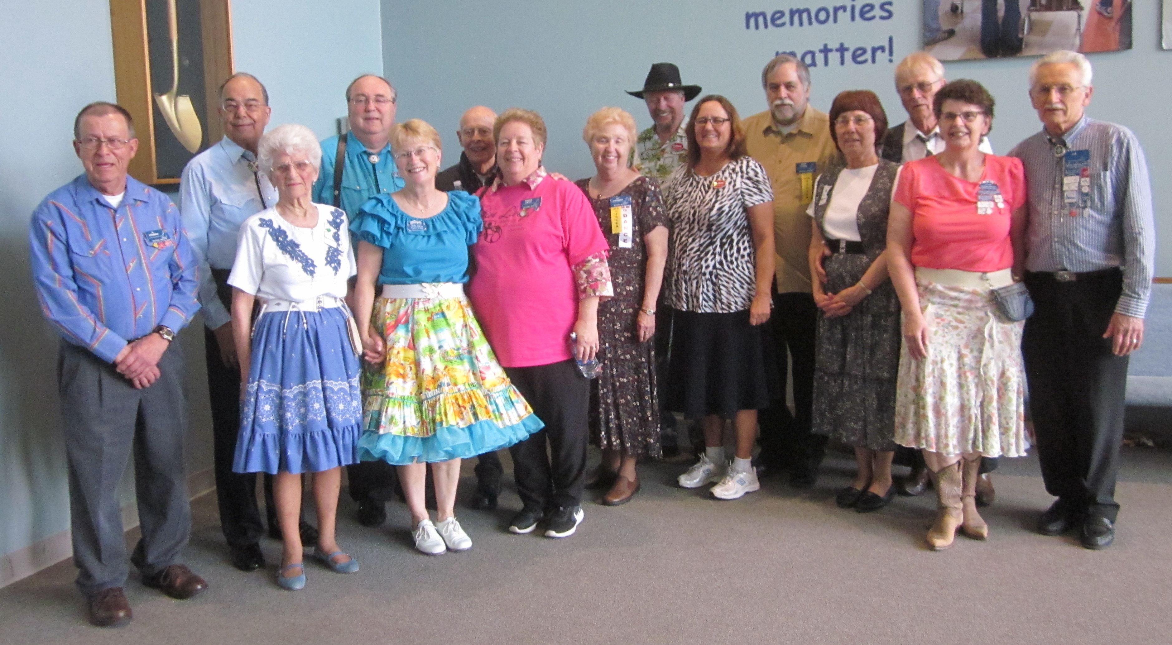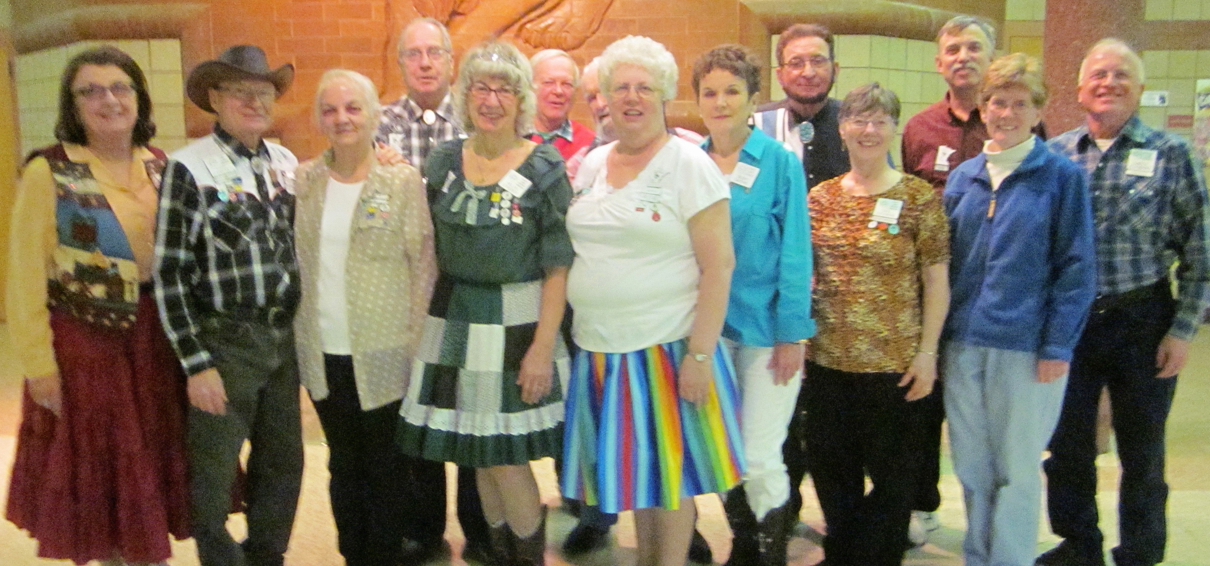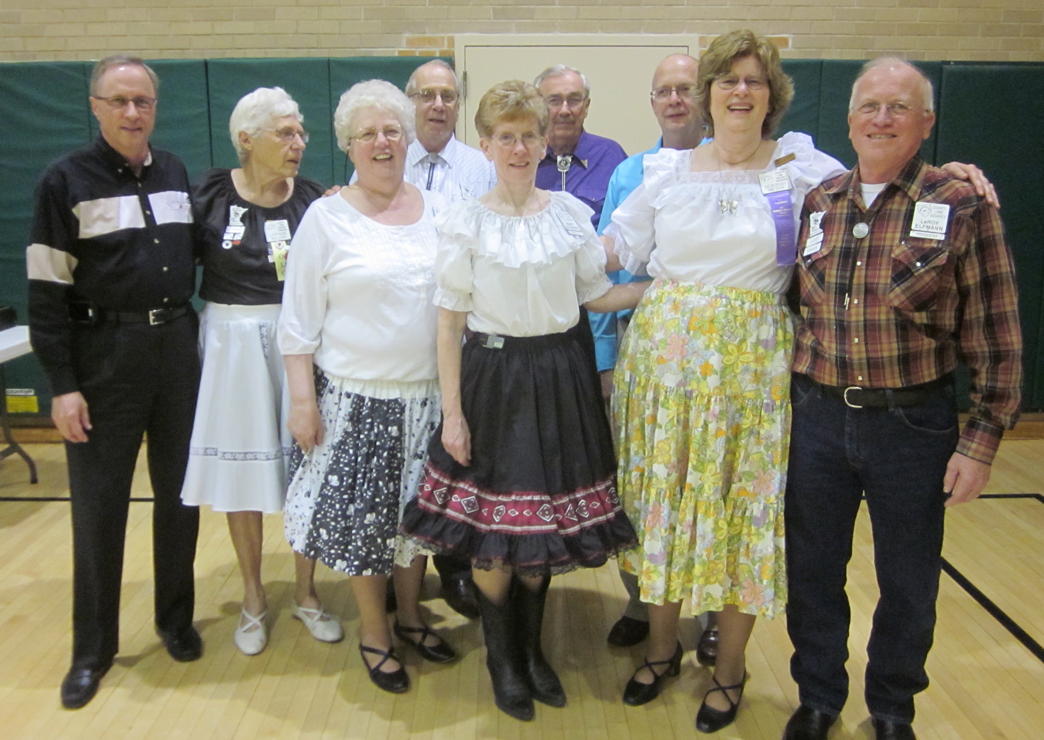 April 13, 2016 – Spares & Pairs Square Dance, Bloomington, Caller Dick Rueter, Cuers Jean and Steve Philson.  Seven squares from five organizations were present.  Attending the dance were County Line Squares Queen Helen and King Steve and Spares & Pairs Queen Jennifer and King Barry, SDM Chair LeRoy Elfmann, SDM Vice Chair Don Hanson, SDM Treasurer Deb Hollimon, and SDM Historian Al Martin.  County Line Squares claimed a large Spares & Pairs banner.