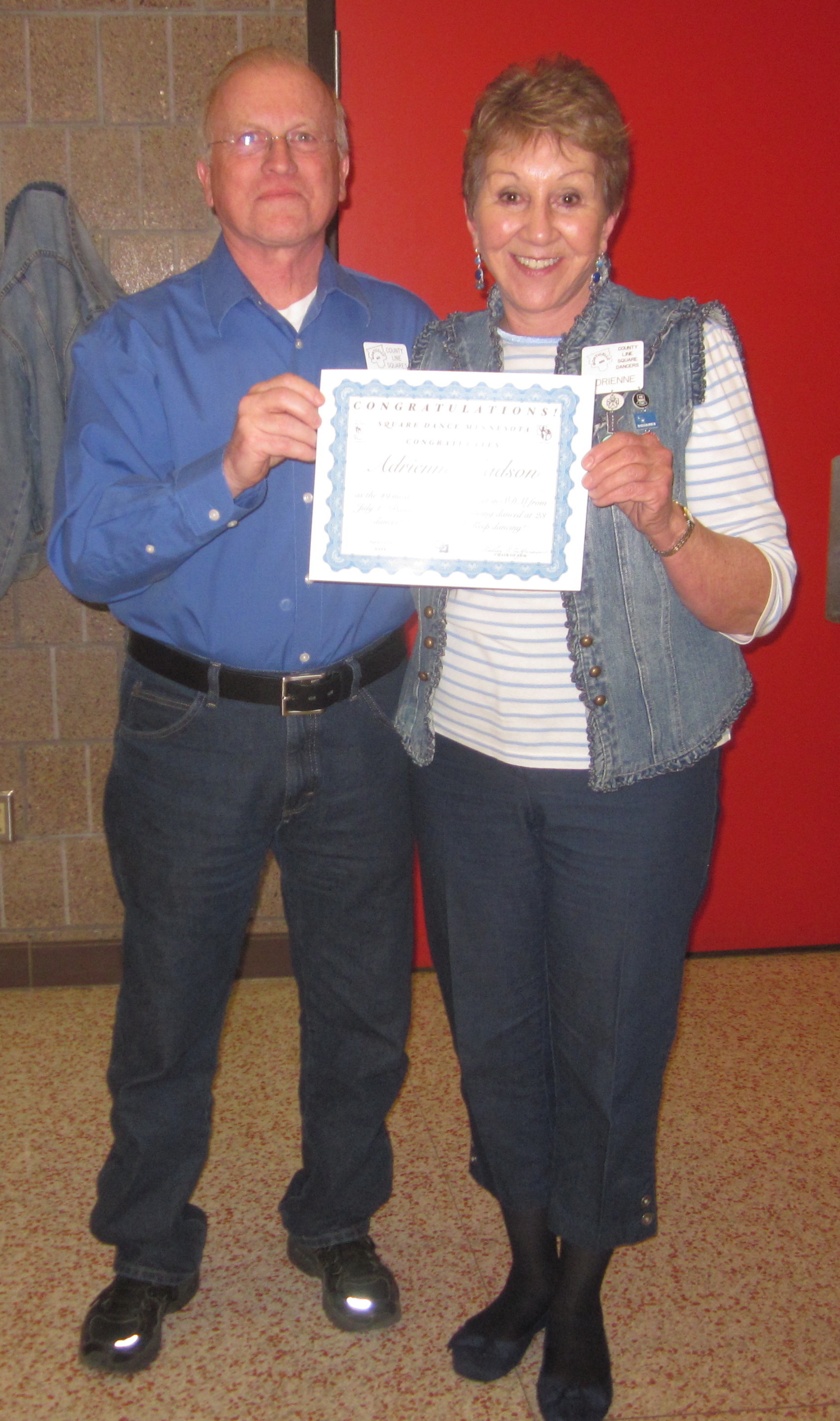 April 2, 2016 – SDM “Spring Festival” Square Dance, St Cloud, Callers Tom Allen, Andy Flint, Larry Fruetel, Monte Gunzeler, Charley Huhtala, Tom Jacobs, Abe Maier, and Roger McNeil; Cuers Sarah Klaphake, Bernadette McNeil, and Donna Stone. Fourteen squares (112 dancers) were present. Also attending were USDA Plains Vice Presidents Judy and Floyd Engelhardt with USDA information and Come Square Dance sold script to help finance their grants. $448 was donated to the Whitney Center. Live Lively, Traveler, and Most-Active Dancer awards, and organization certificates and 501(c)(3) documentation were presented. Great desserts were available throughout the dance. More than 60 members attended the Idea Exchange held in the morning. ETTA Square & Rounds and Beaux & Belles hosted the dance and Tom Allen was the emcee.