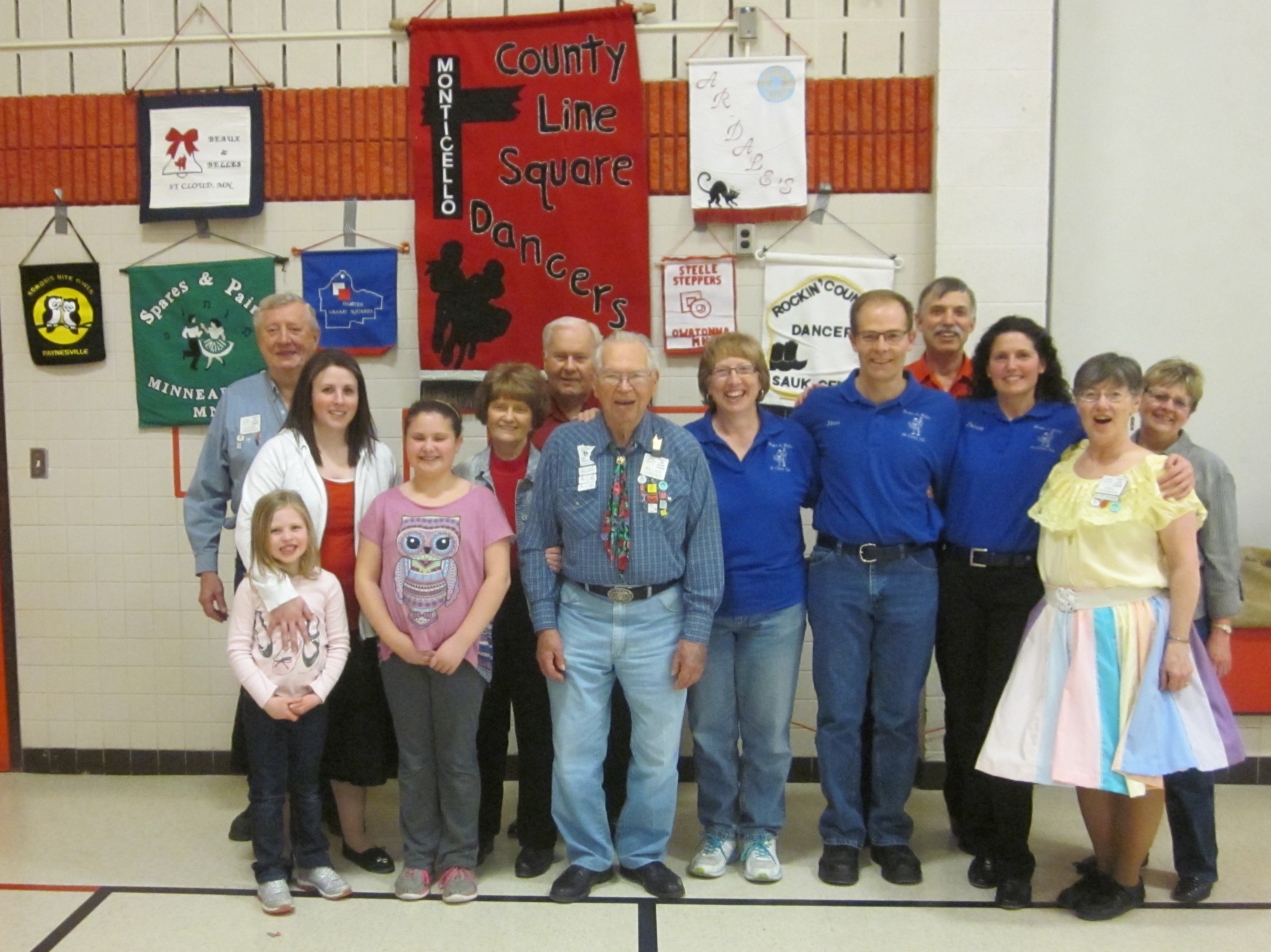 April 8, 2016 – County Line Squares “Cherry Blossoms” Square Dance, Monticello, Caller Royce Nelson, Cuer Sarah Klaphake. Eight squares with dancers from Westonka Whirlers, Single Circles, Hot Foot Stompers, Dan’se P.A.C., Dakota Grand Squares, County Line Squares, Beaux & Belles, and Ar-Dale Dancers. Dakota Grand Squares Queen RoseMarie and King John brought their new Queen Becky and County Line Squares Queen Adrienne crowned our new Queen Helen and King Steve. Also present were SDM Education Director Bob Meyer and SDM Historian Al Martin.
