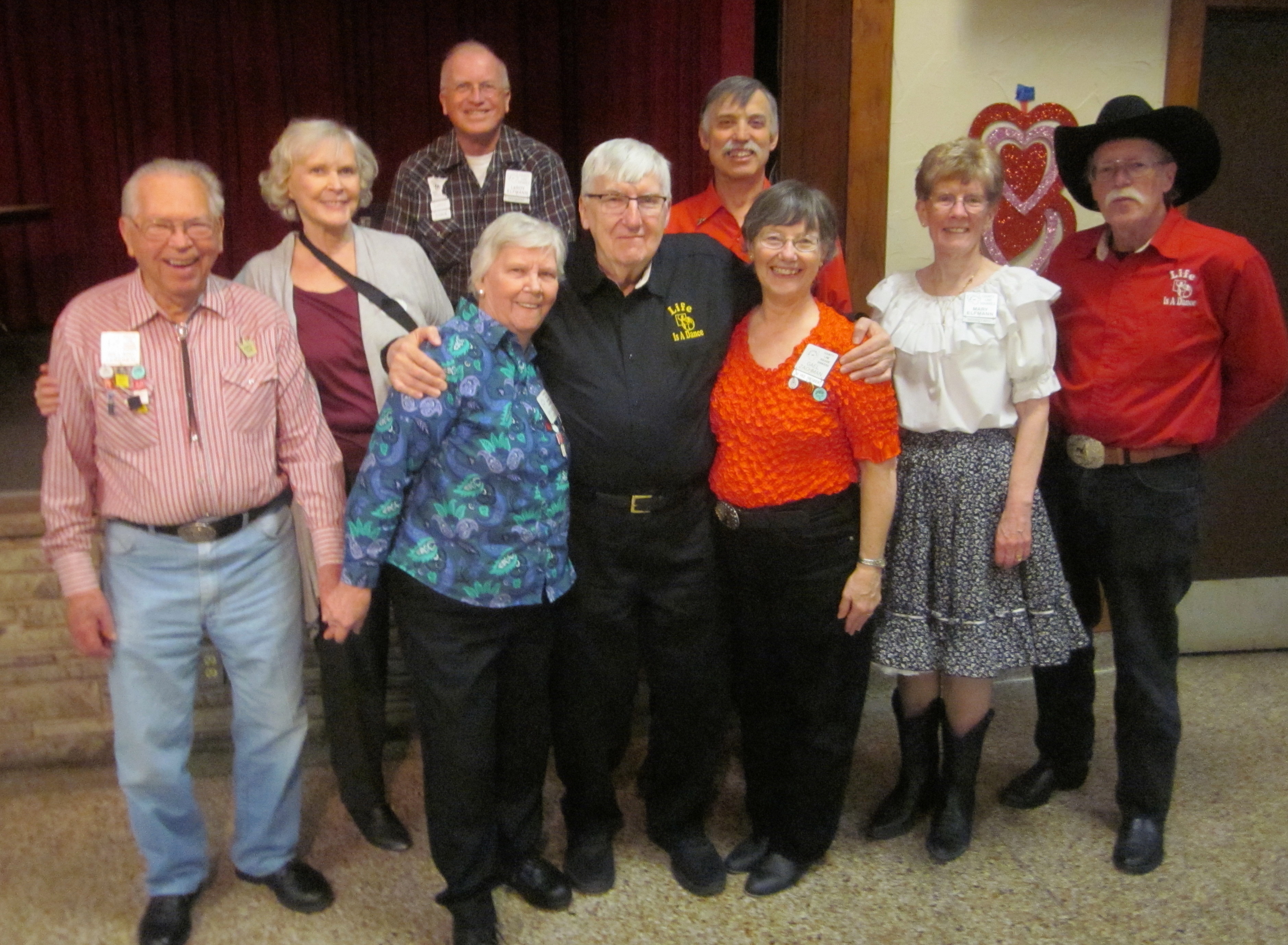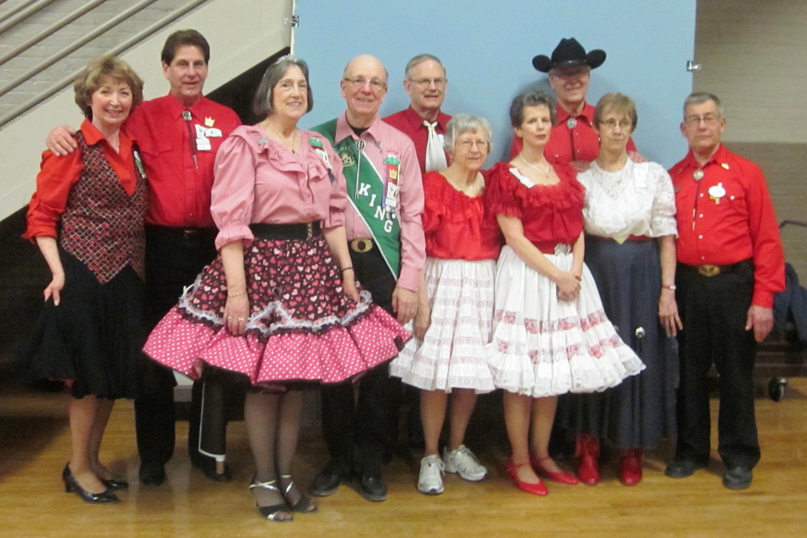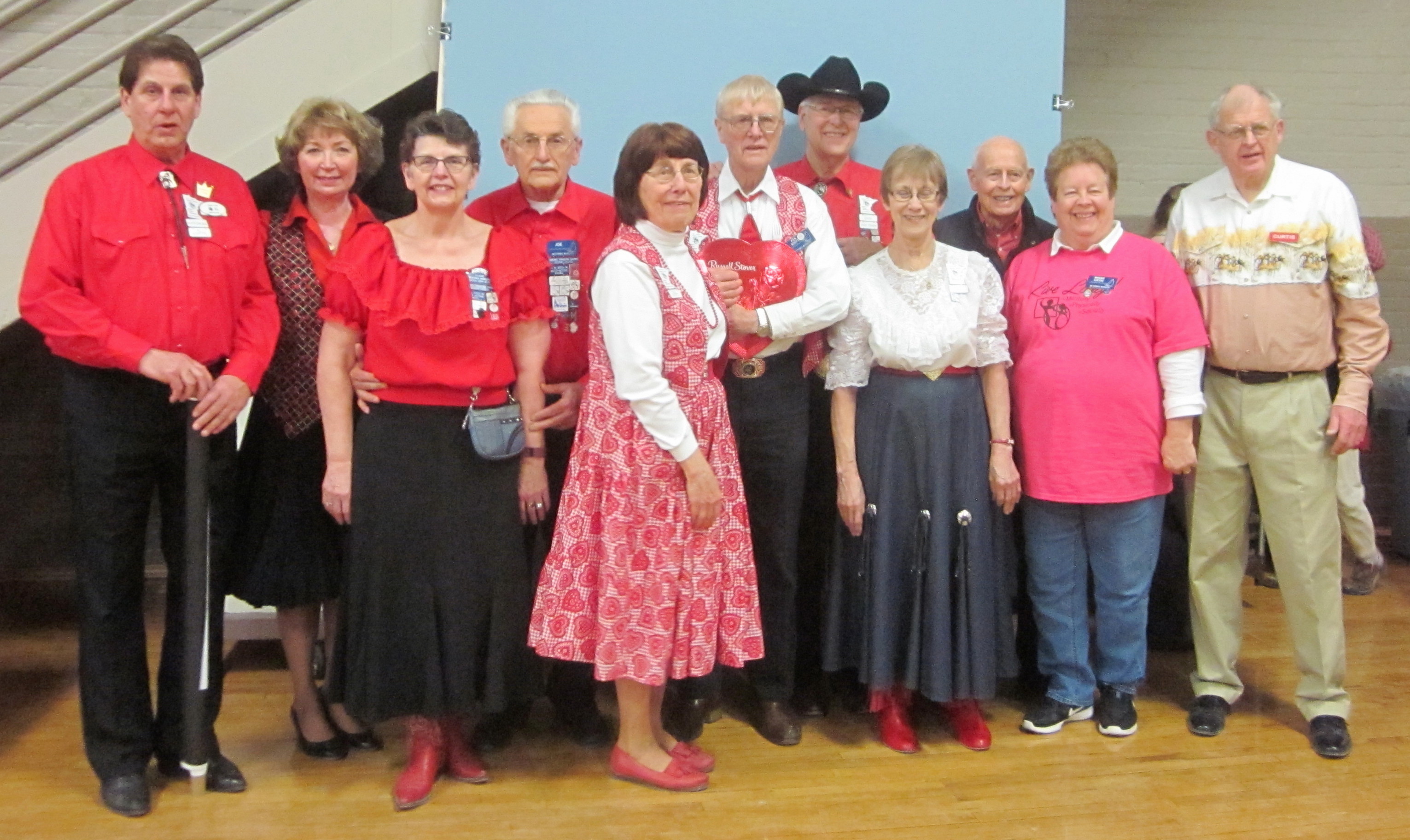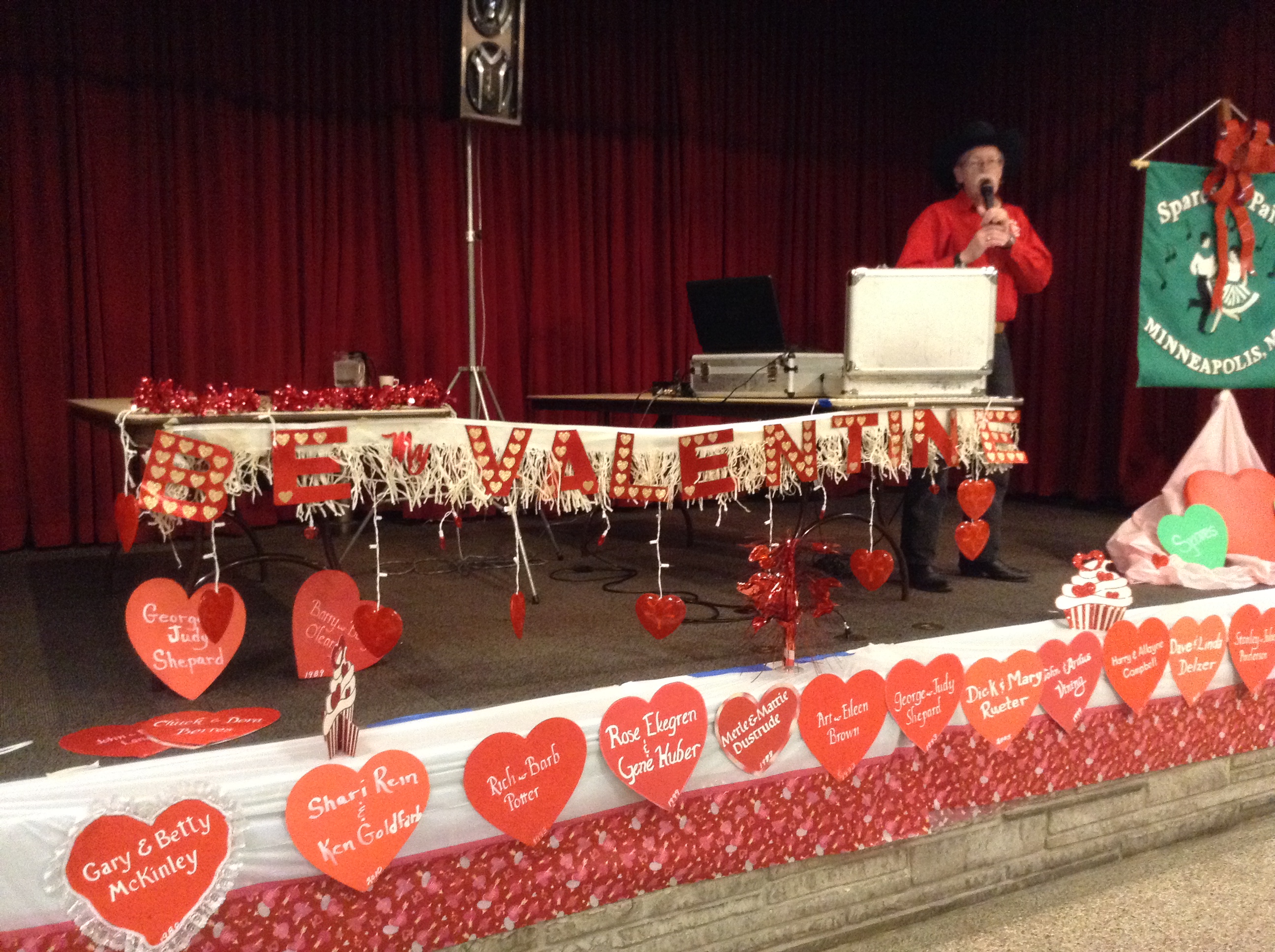 February 14, 2016 – Ar-Dale Dancers “Swing with Your Sweetie” Square Dance, White Bear Lake, Caller Mike Hogan, Cuer Ken LaBau. What a fantastic Valentine’s Day dance we had with Mike Hogan and Ken and Barb LaBau! Mike sang many Love Songs to the almost 18 squares in attendance! His melodic voice makes dancing so smooth. Royalty in attendance was our own Bonnie Eidman, along with Myrna Connett from Bloomington Swirlers, Shirlee Feneis from Crystal Crosstrailers, John and Rose Cook from Dakota Grand Squares, Jeanie Schilling from Friendly Twirlers, Kay Duffy from South Metro Stars, Barry and Jennifer Downs from Spares & Pairs, and Mickey and Ben Formanack from Square & Twirl. Other celebrities in attendance were Federation President Janet Sahlstrom, Federation Member Services Doug Brodeen, SDM Chair LeRoy Elfmann, SDM Vice Chair Don Hanson, SDM Secretary Mary Kay Amberg, SDM Treasurer Deb Hollimon, SDM Education Director Bob Meyer, and SDM Historians Al and Cindy Martin. South Metro Stars retrieved their small banner and Dakota Grand, Crystal Cross Trailers, Friendly Twirlers, Hot Foot Stompers, Spares & Pairs, and Westonka Whirlers all took home small banners. All our new dancers came to the dance and had a great time. We appreciate all the angels from all the clubs who helped them out.