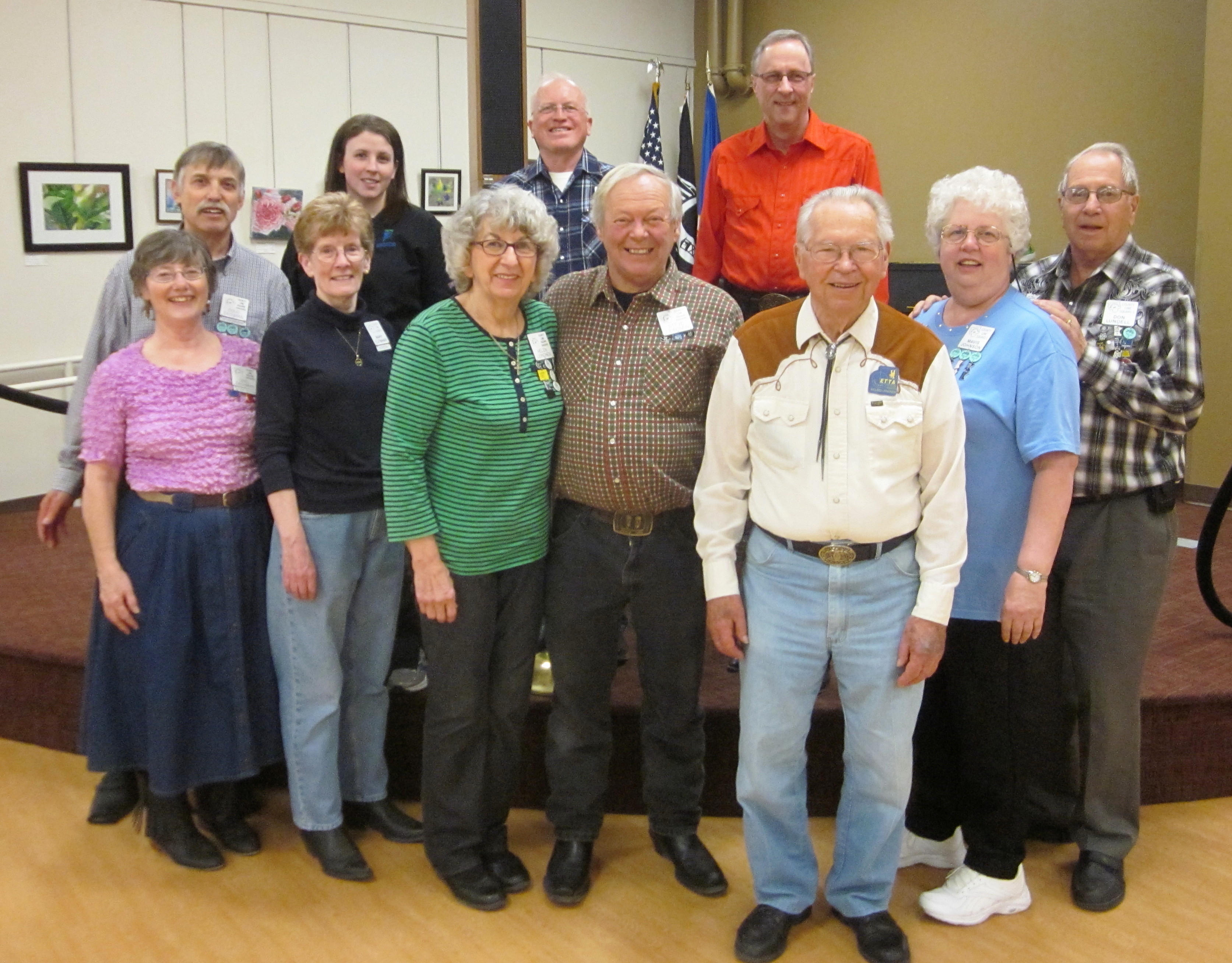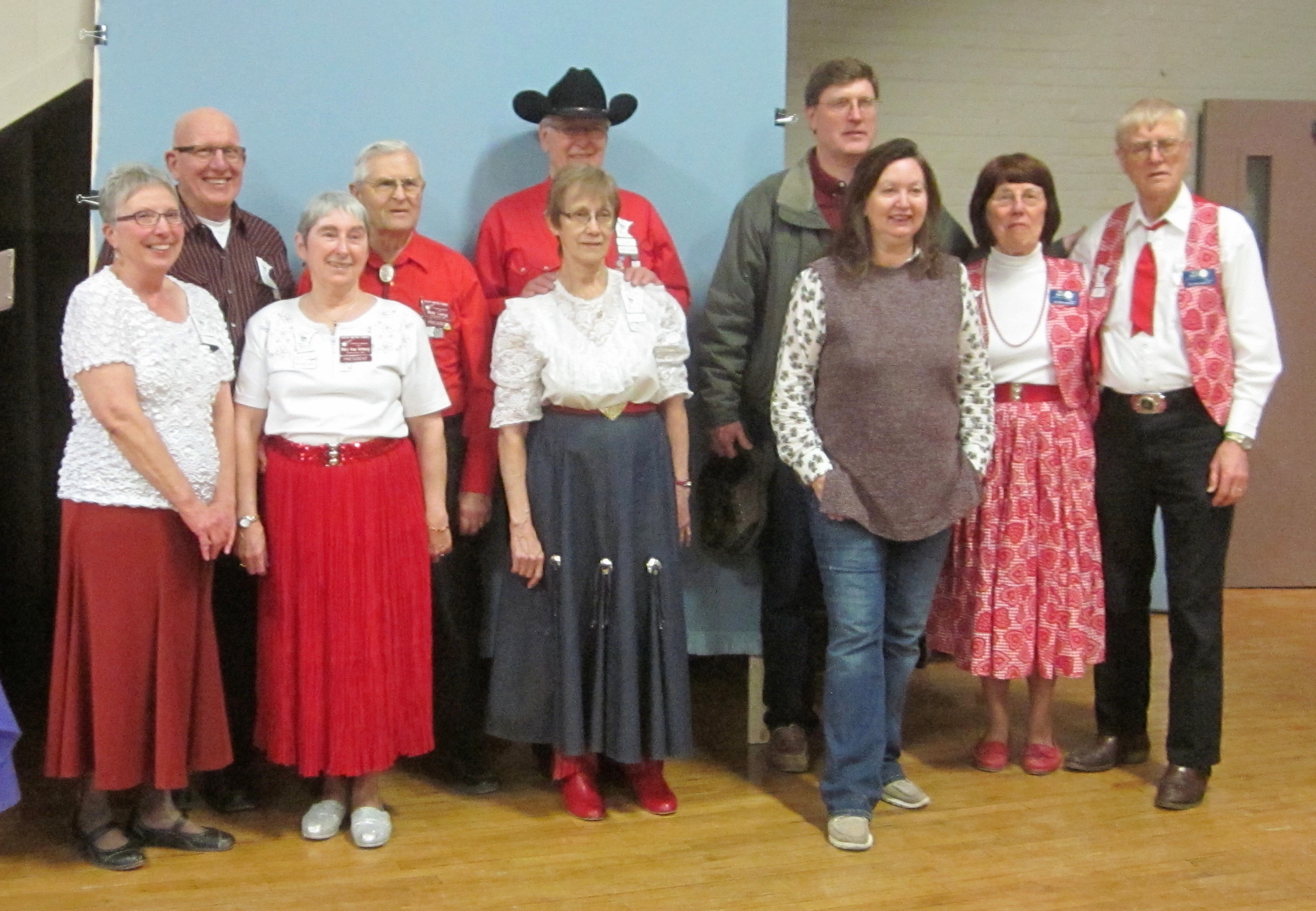 February 12, 2016 – County Line Squares “Birthday Bash” Square Dance, Monticello, Caller Abe Maier, Cuer Jane Simpson. Seven squares with dancers from Westonka Whirlers, Spares & Pairs, Dan’se P.A.C., Cambridge Corners, and County Line Squares were present. Also present were County Line Squares Queen Adrienne Madson, SDM Education Director Bob Meyer, SDM Historian Al Martin, Federation Roundup Subscription Manager and Enhancin’ Dancin’ Editor Paul Pearson, and Federation Roundup Recipe Editor Jenny Johnson.