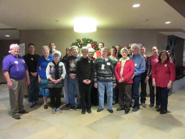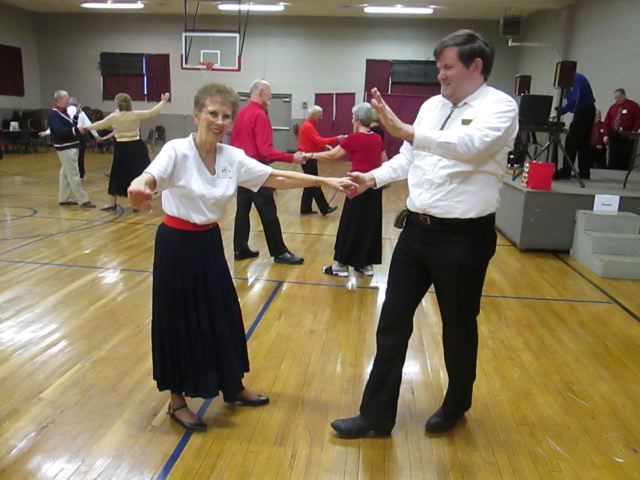 December 13, 2015 – It was a warm (December standards), but rainy Sunday afternoon for our December dance. The Sprosty Twins called our ‘Double Your Pleasure, Double Your Fun’ dance and Ken LaBau cued rounds. We had 7 squares representing 11 different clubs. It was a very lively dance with lots of fun Christmas music. Royalty in attendance were King Barry and Queen Jennifer Downs from Spares & Pairs, King Ben and Queen Mickey Formanack from Square & Twirl, Queen Kay Duffy from South Metro Stars, and our own Queen Bonnie Eidman. Other celebrities in attendance were SDM Vice Chair Don Hanson and SDM Education Director Bob Meyer. Hotfoot Stompers took home a small banner. Our next dance is January 10th with Larry Fruetel calling. We encourage new dancers to come to that dance!
