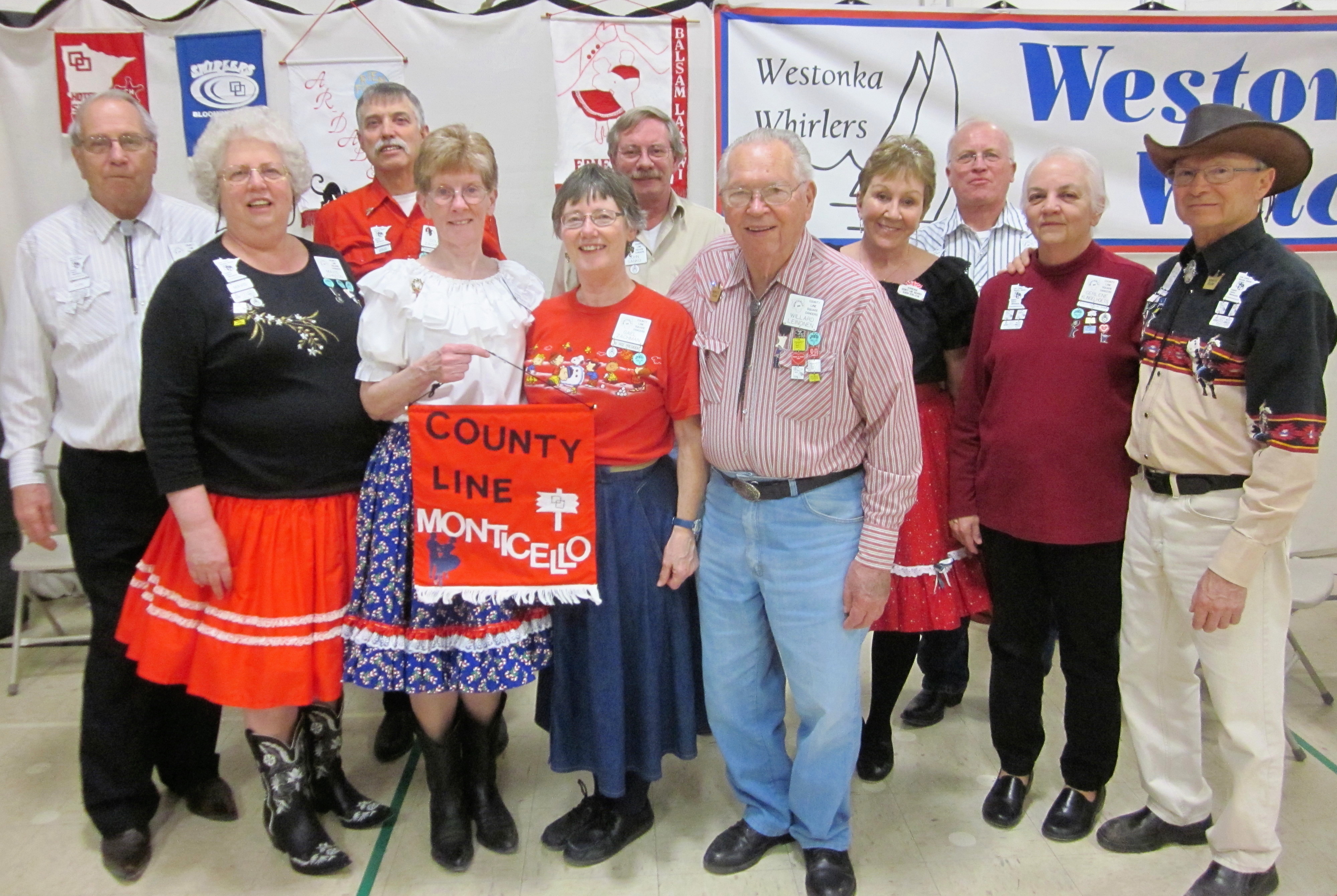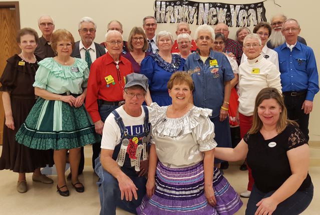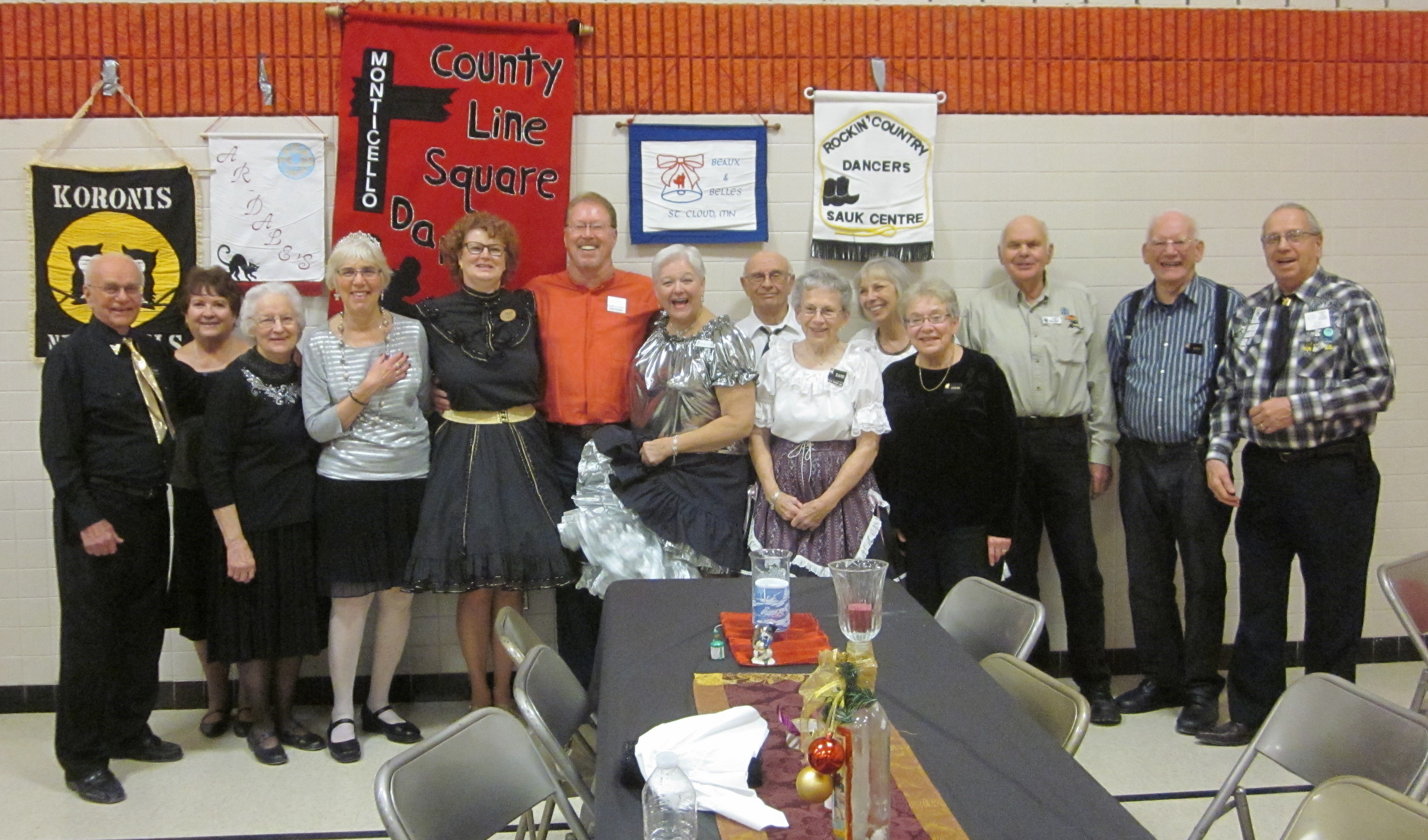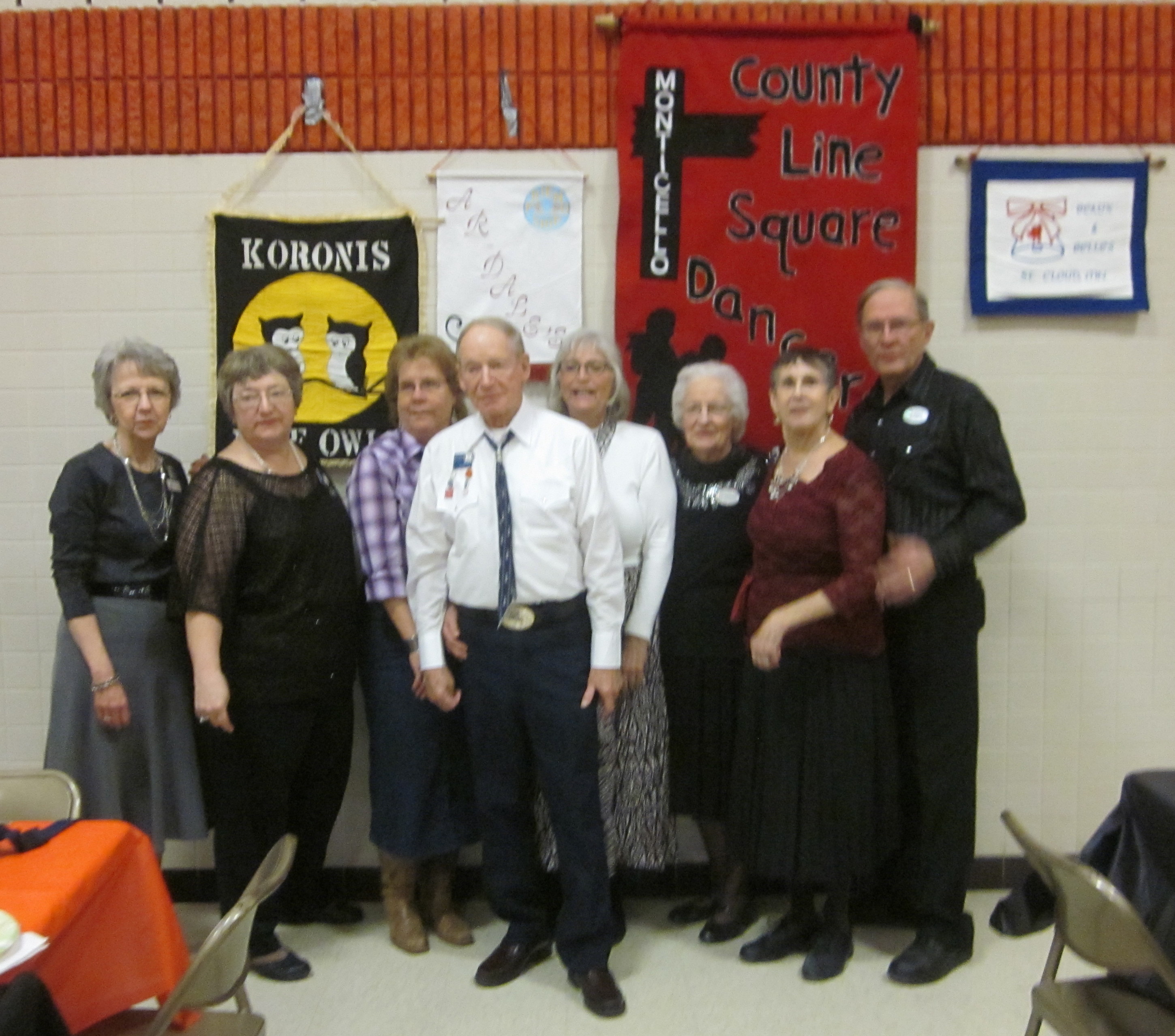 December 31, 2015 – County Line Squares “New Year’s Eve – Glitter Ball” Square Dance, Monticello, Caller Abe Maier, Cuer Jane Simpson. Twelve squares with dancers from Steele Steppers, Hotfoot Stompers, Square & Twirl, Crystal Cross Trailers, Wandering Wheels, County Line Squares, Single Circles, Dan’se P.A.C., Spares & Pairs, Cambridge Corners, and Rum River Squares enjoyed the evening celebration. County Line Squares Queen Adrienne, Cambridge Corners Queen Coni, Single Circles Queen Journey, and King Club members were present as were SDM Education Director Bob Meyer, SDM Historian Al and Cindy Martin, and The Roundup Subscription Manager and Enhancin’ Dancin’ Editor Paul Pearson.