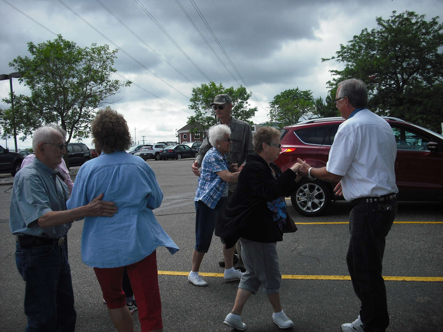 June 20, 2015 – Bus departed Fargo, North Dakota, with area dancers, stopped in St Joseph, Hasty, Plymouth, and Richfield, Minnesota, and picked up additional dancers. The tour stopped at Plymouth for lunch and afterwards danced in the Perkins parking lot. Group also danced at the Richfield stop before driving to Waupun, Wisconsin, for a dinner/dance with Prison City Squares. Callers were Dave Schulz and Roger McNeil with Bernadette McNeil cuing Rounds. After the dance the tour continued on to Mundelein, Illinois, where they spent the night.