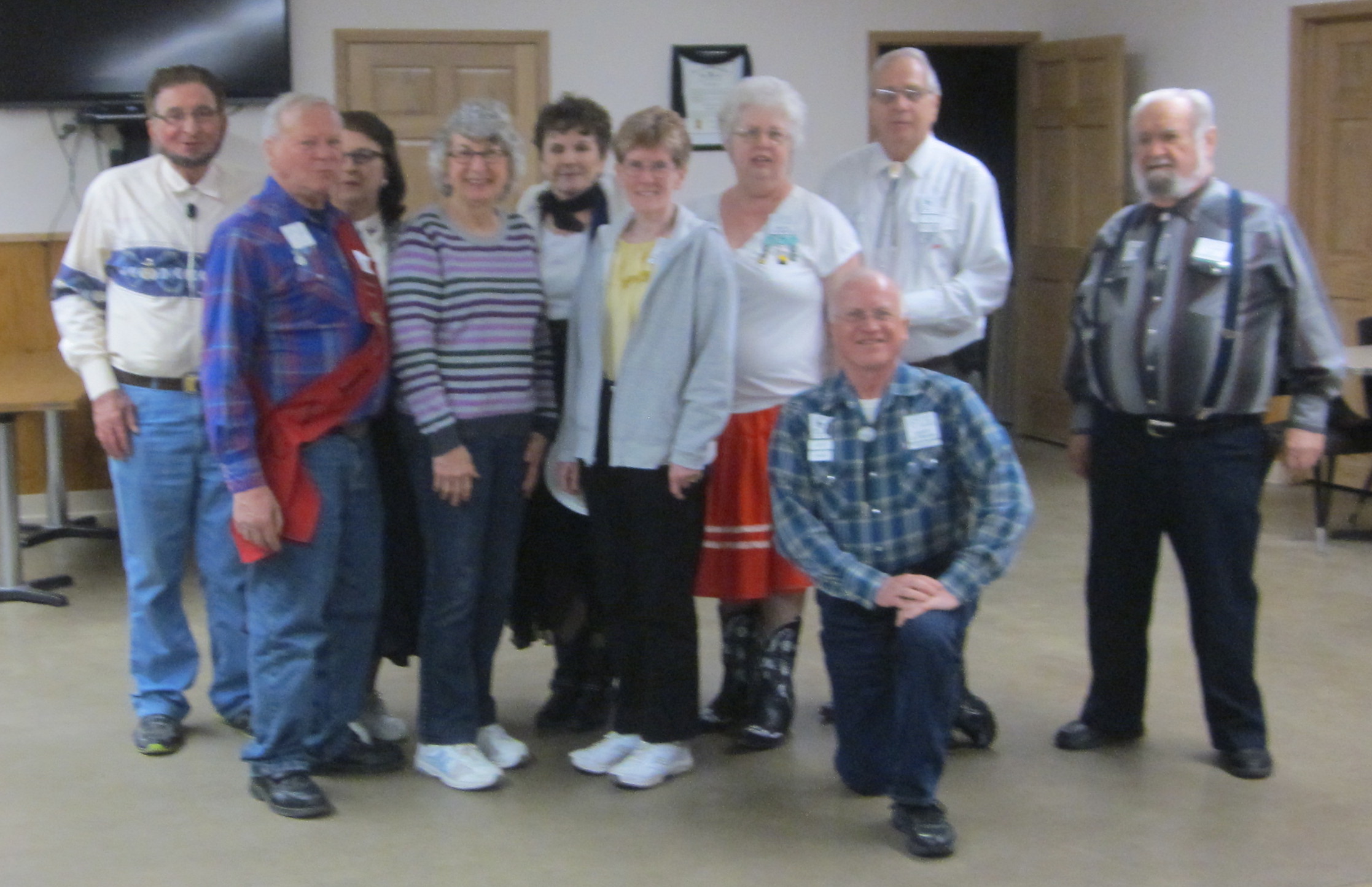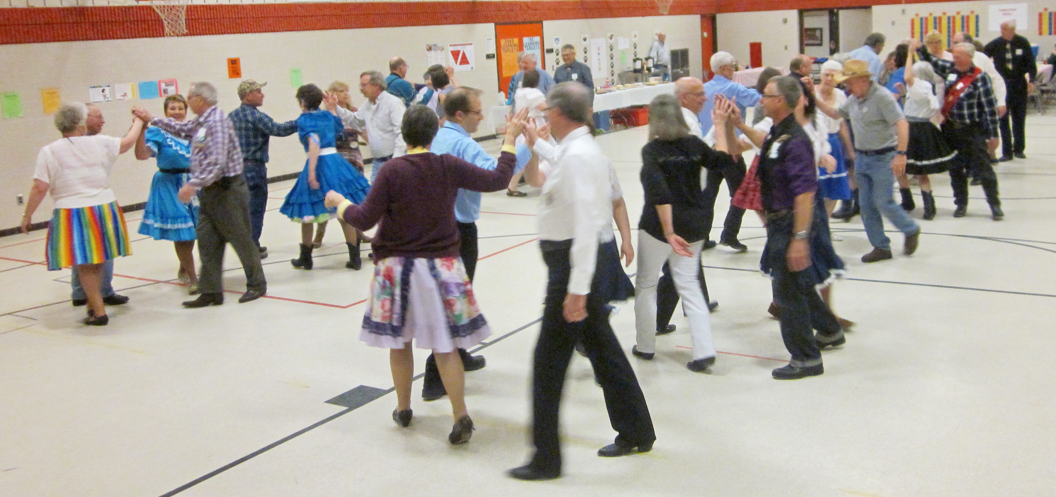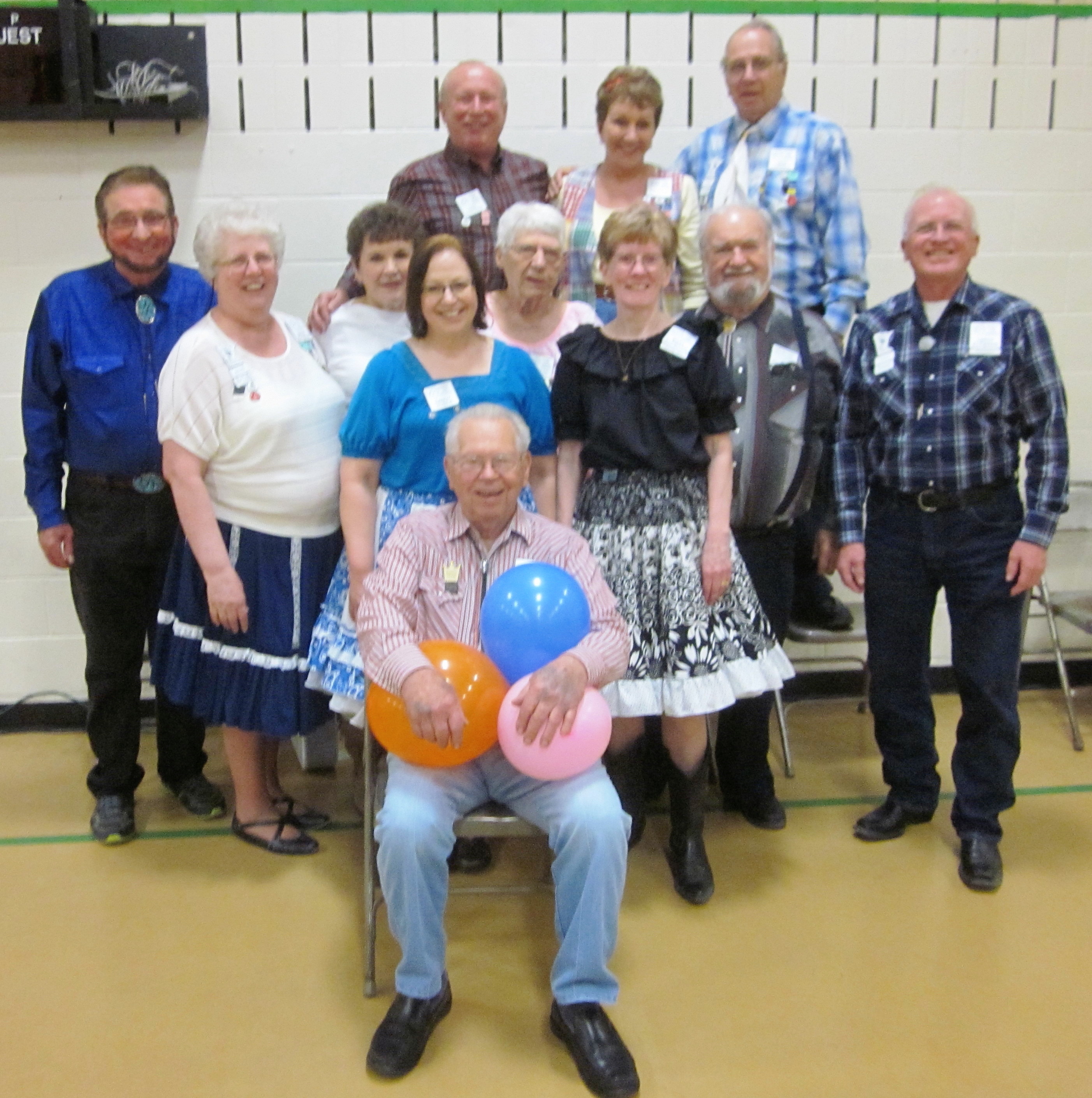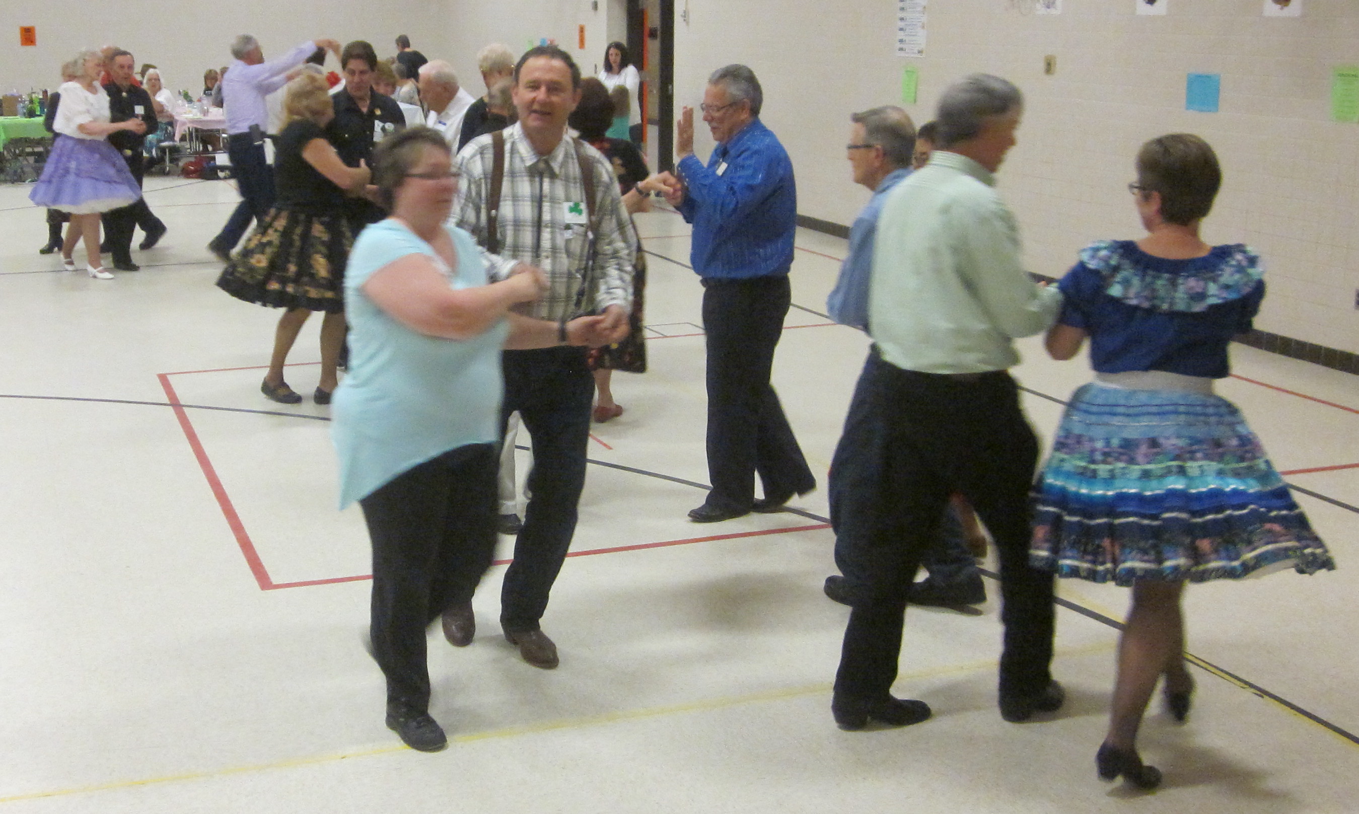 April 29, 2016 – County Line Squares “Favorite Pie” Square Dance, Monticello, Caller Abe Maier, Cuer Sarah Klaphake. Ten squares with dancers from Beaux & Belles, Bloomington Swirlers, County Line Squares, Crystal Cross Trailers, Pairs & Squares (Fort Frances, Canada), Rays Promenaders, Single Circles, Spares & Pairs, and Westonka Whirlers. Also attending were County Line Squares Queen Helen and King Steve, and SDM Historian Al Martin.