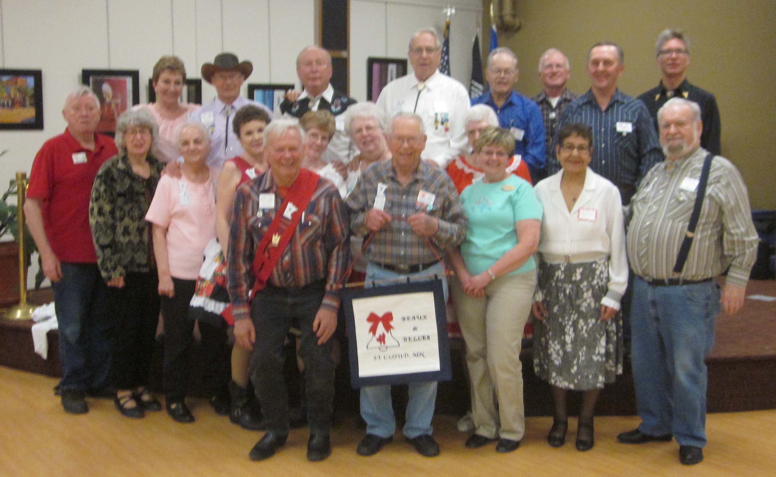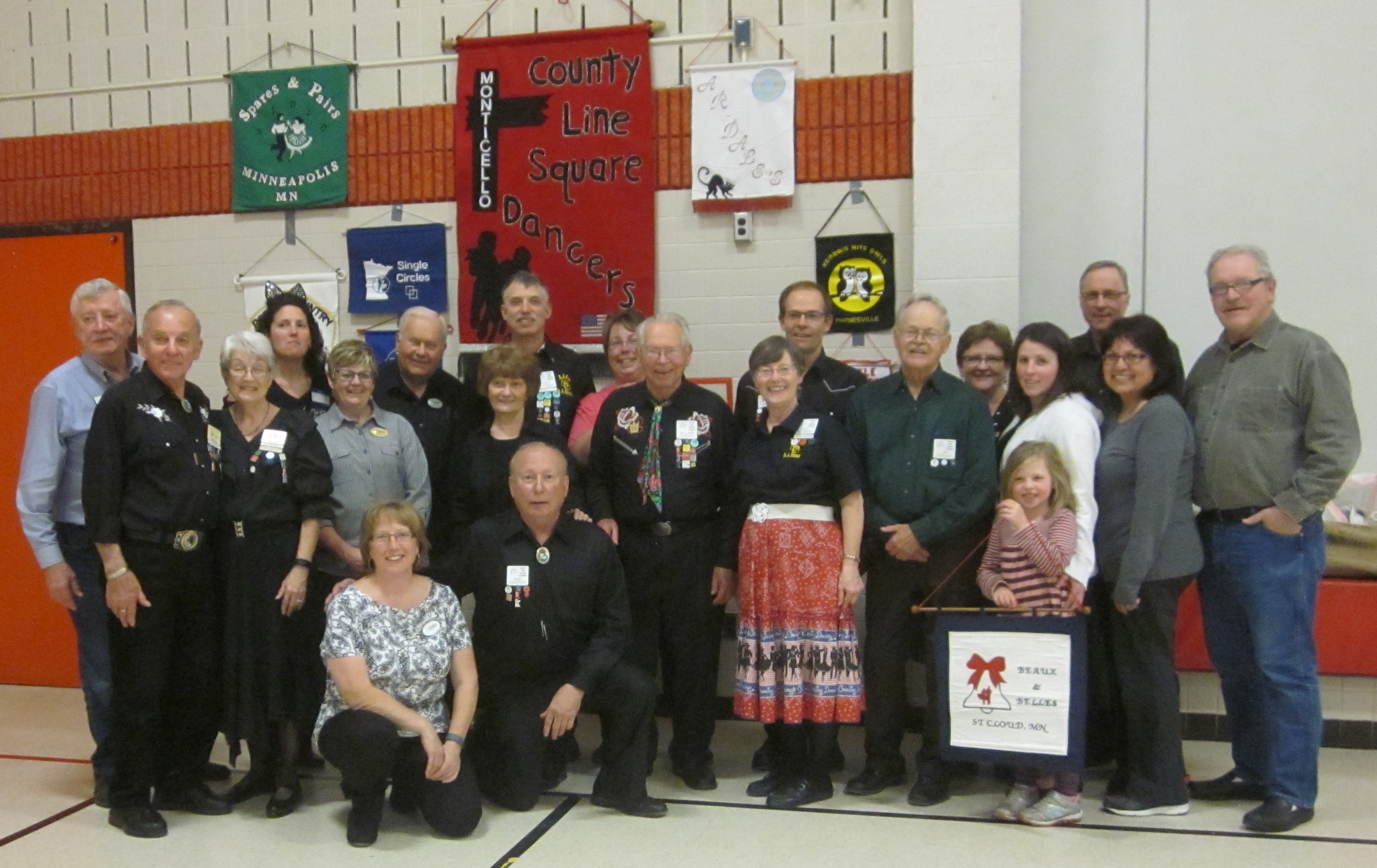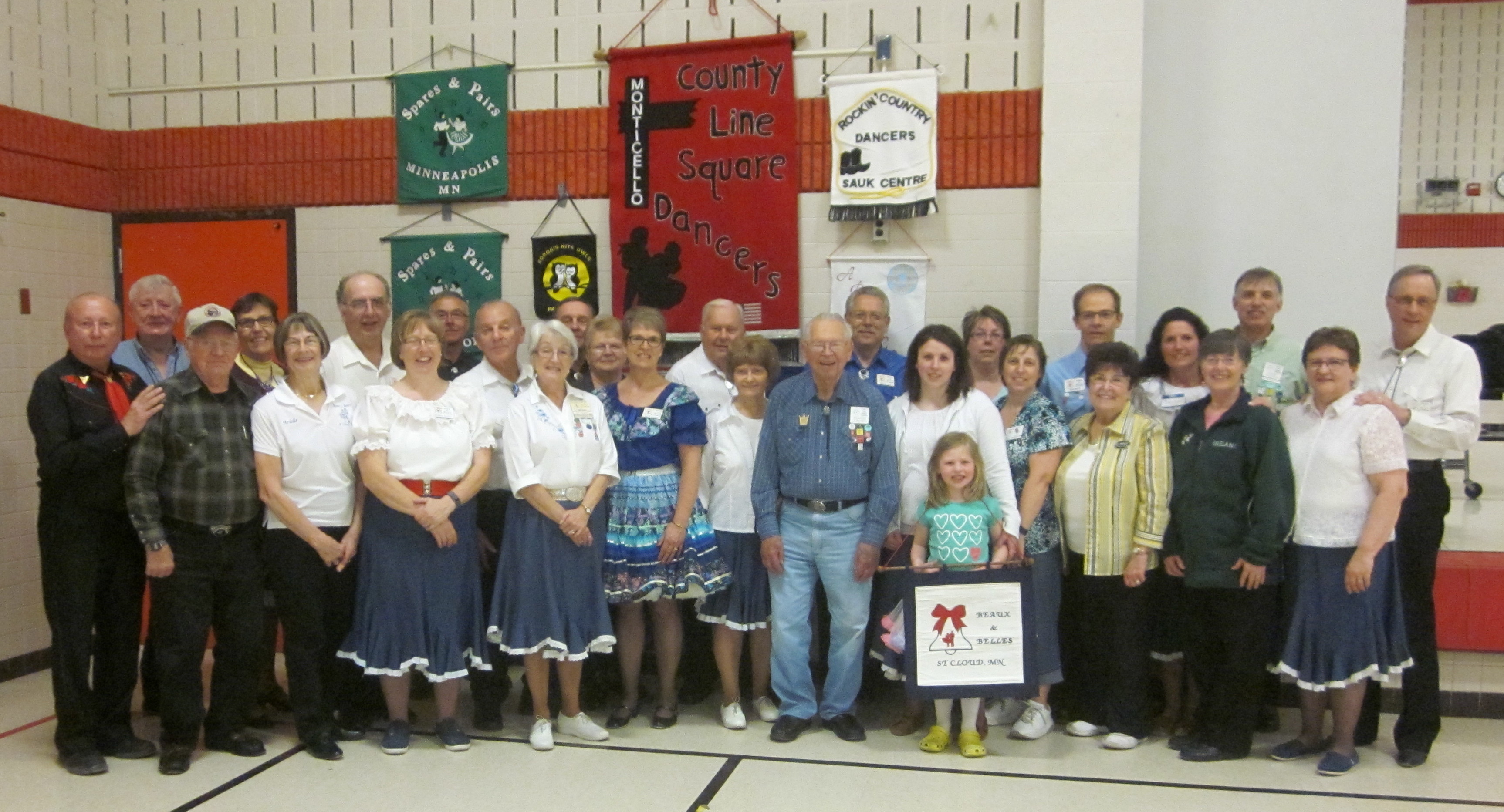 May 4, 2016 – Beaux & Belles “Cinco de Mayo” Square Dance, St Cloud, Caller Myron Hollatz, Cuer Sarah Klaphake. Five squares with dancers from Rockin’ Country Dancers, County Line Squares, and Beaux and Belles were present. County Line Squares claimed a Beaux & Belles banner.