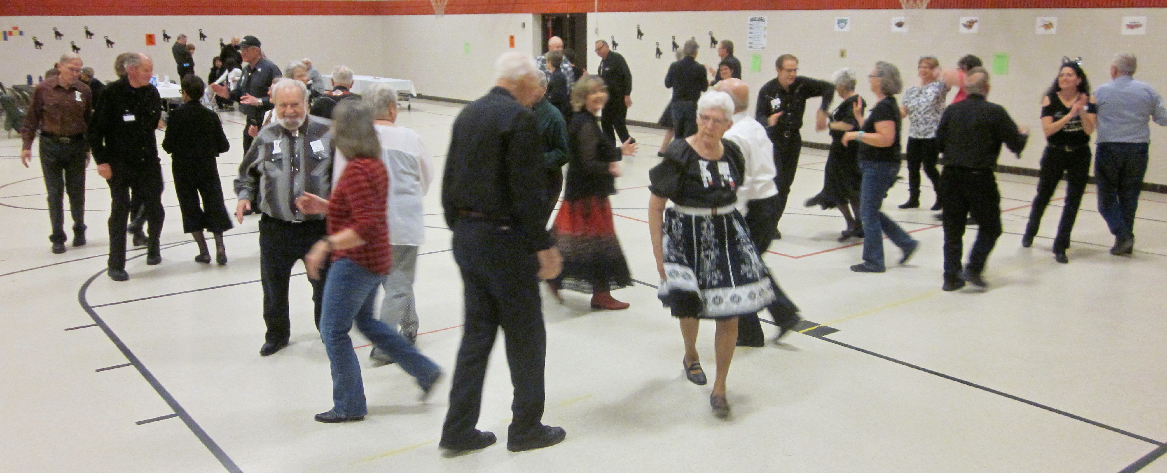 May 13, 2016 – County Line Squares “Black Cat” Square Dance, Monticello, Caller Abe Maier, Cuer Sarah Klaphake. Eight squares with dancers from Spares & Pairs, Single Circles, Koronis Nite Owls, County Line Squares, and Beaux & Belles were present. Attending the dance were Spares & Pairs Queen Evonne and King Clem.