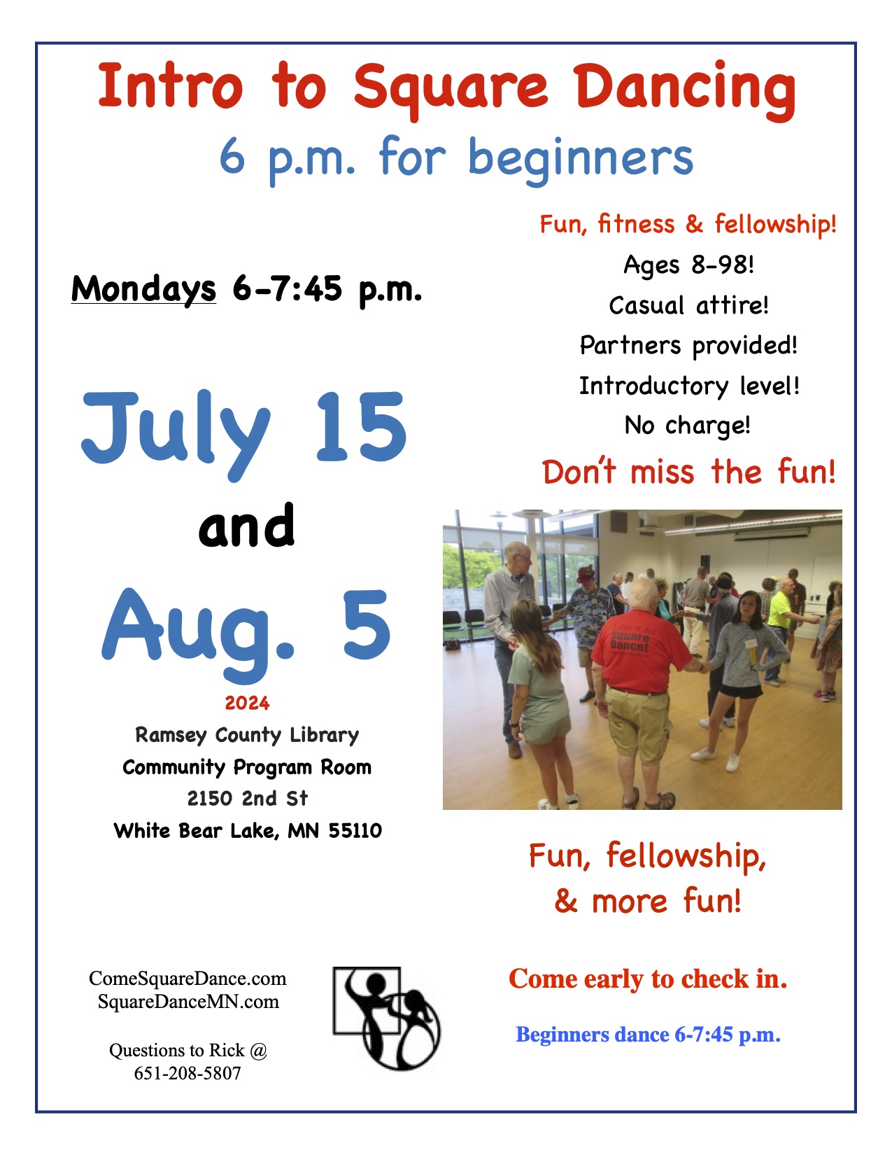 Intro to Square Dancing (“Beginner Square Dancing” 6:00-7:45 pm). Ar-Dale Dancers Flyer