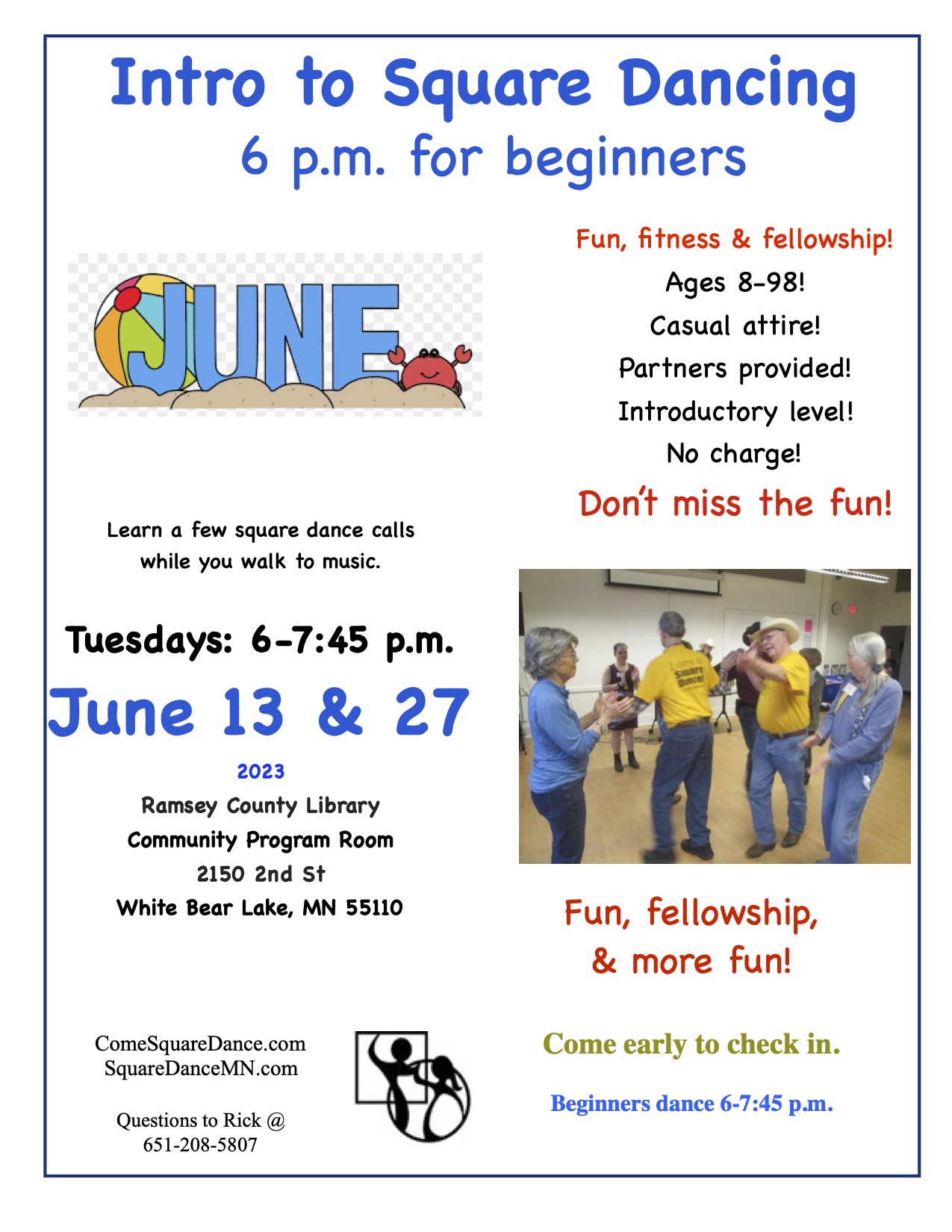 Intro to Square Dancing (“Beginner Square Dancing” 6:00-7:45 pm). Ar-Dale Dancers Flier