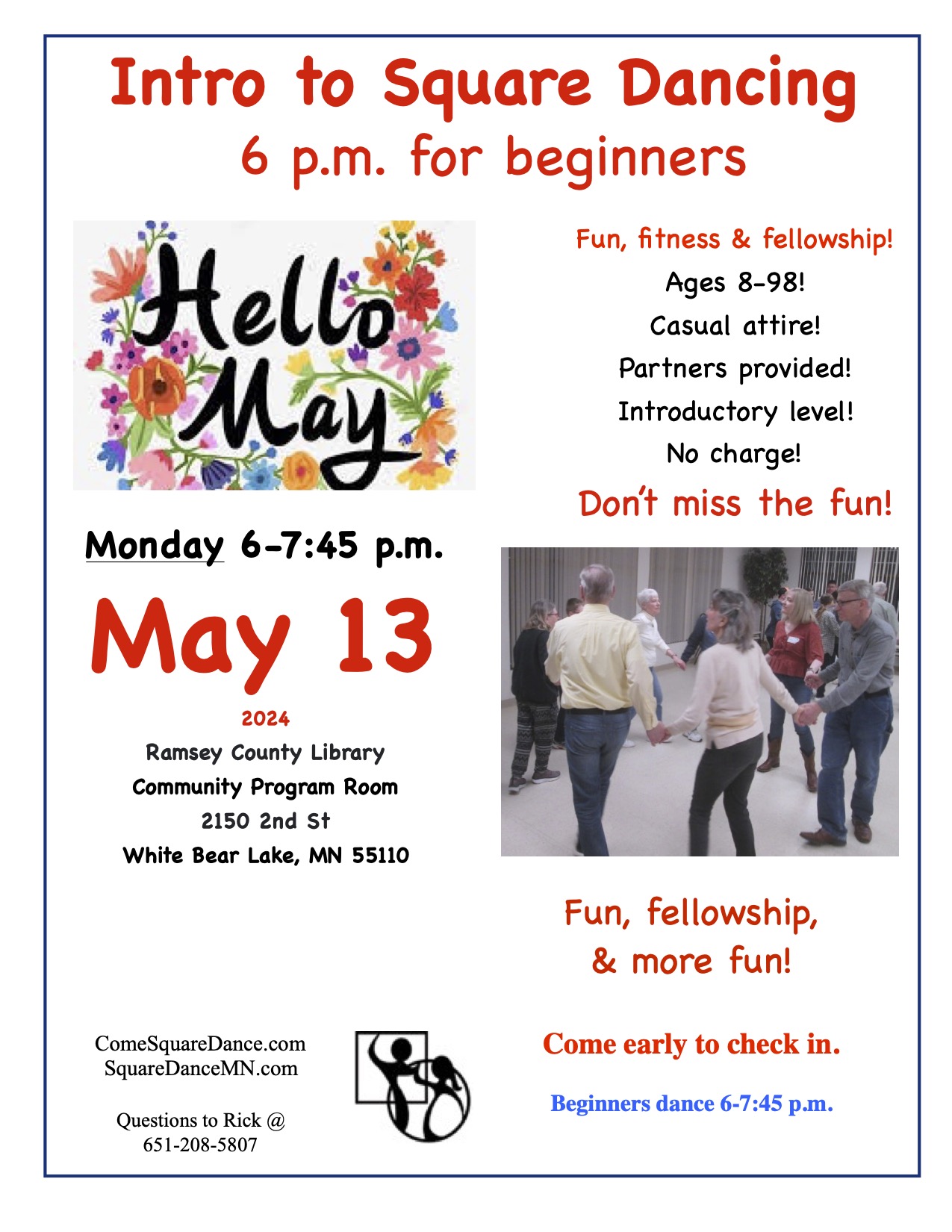 Intro to Square Dancing (“Beginner Square Dancing” 6:00-7:45 pm).